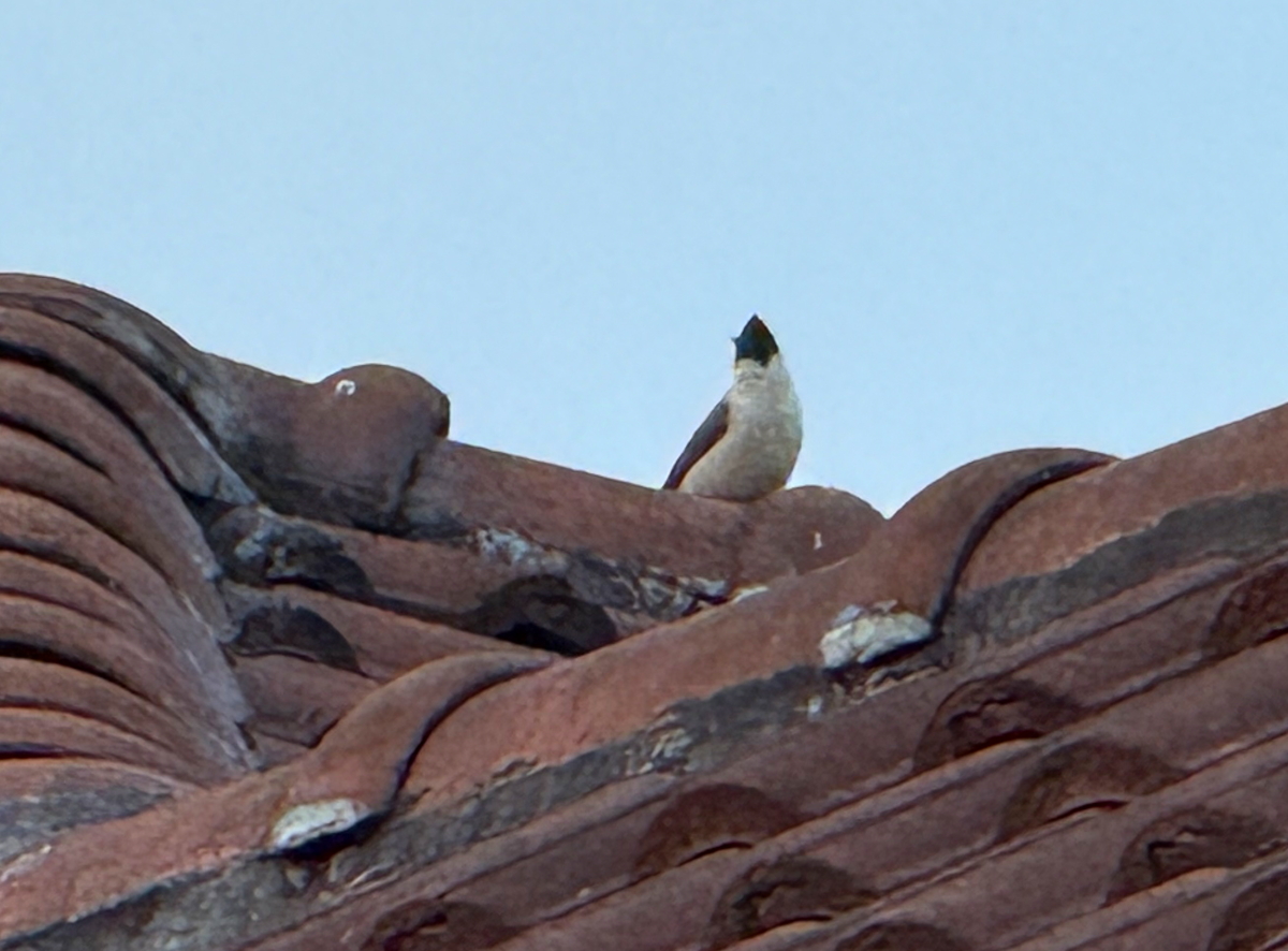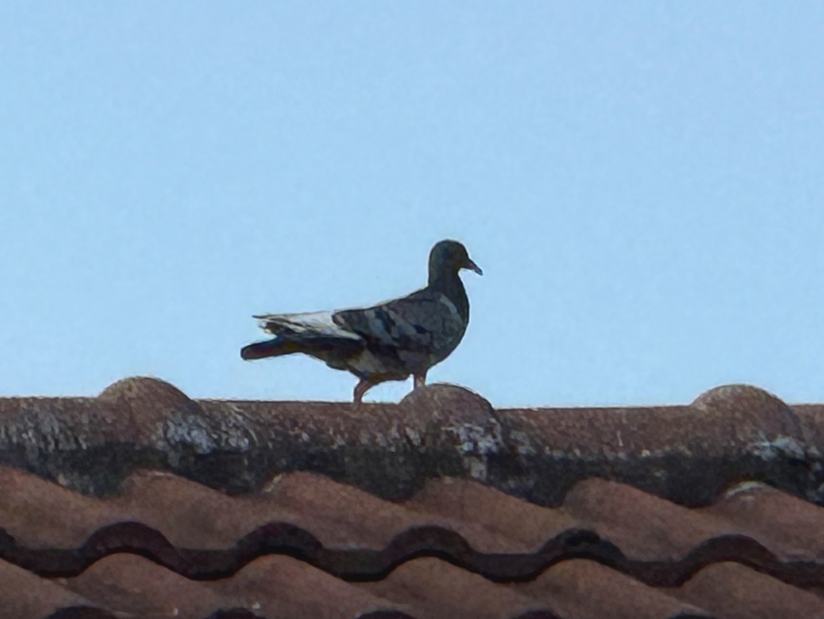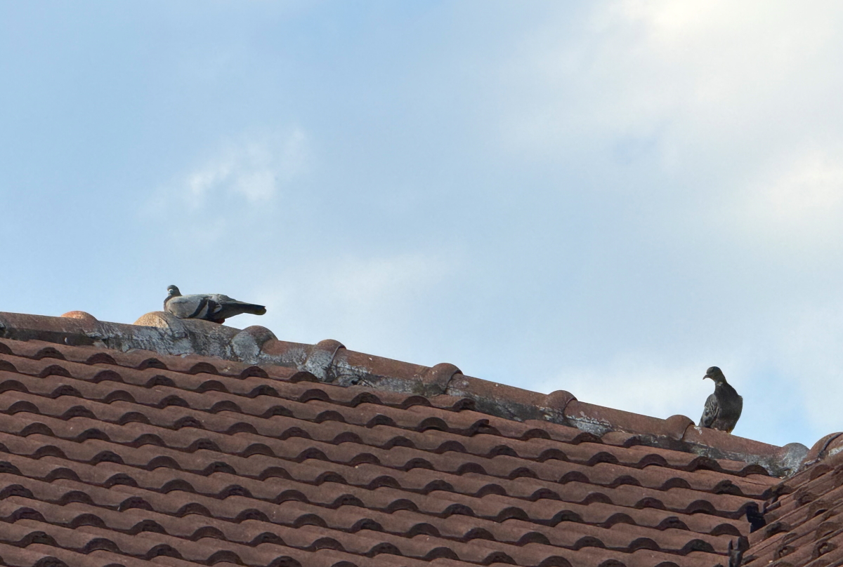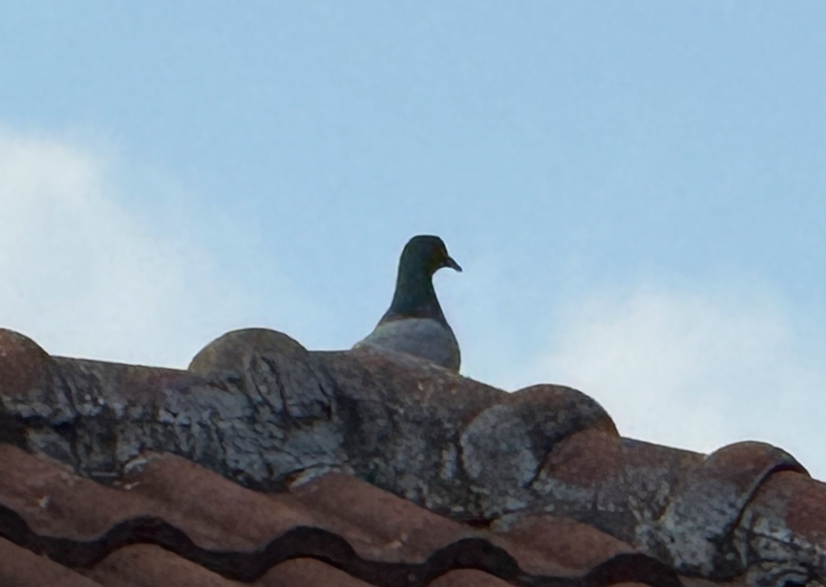 鳩のいぬ間にこちらの鳥さんが屋根上からこんにちは