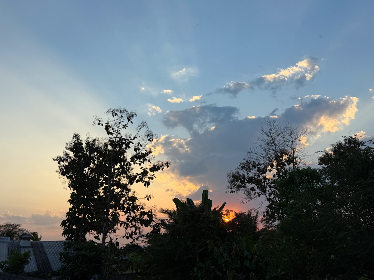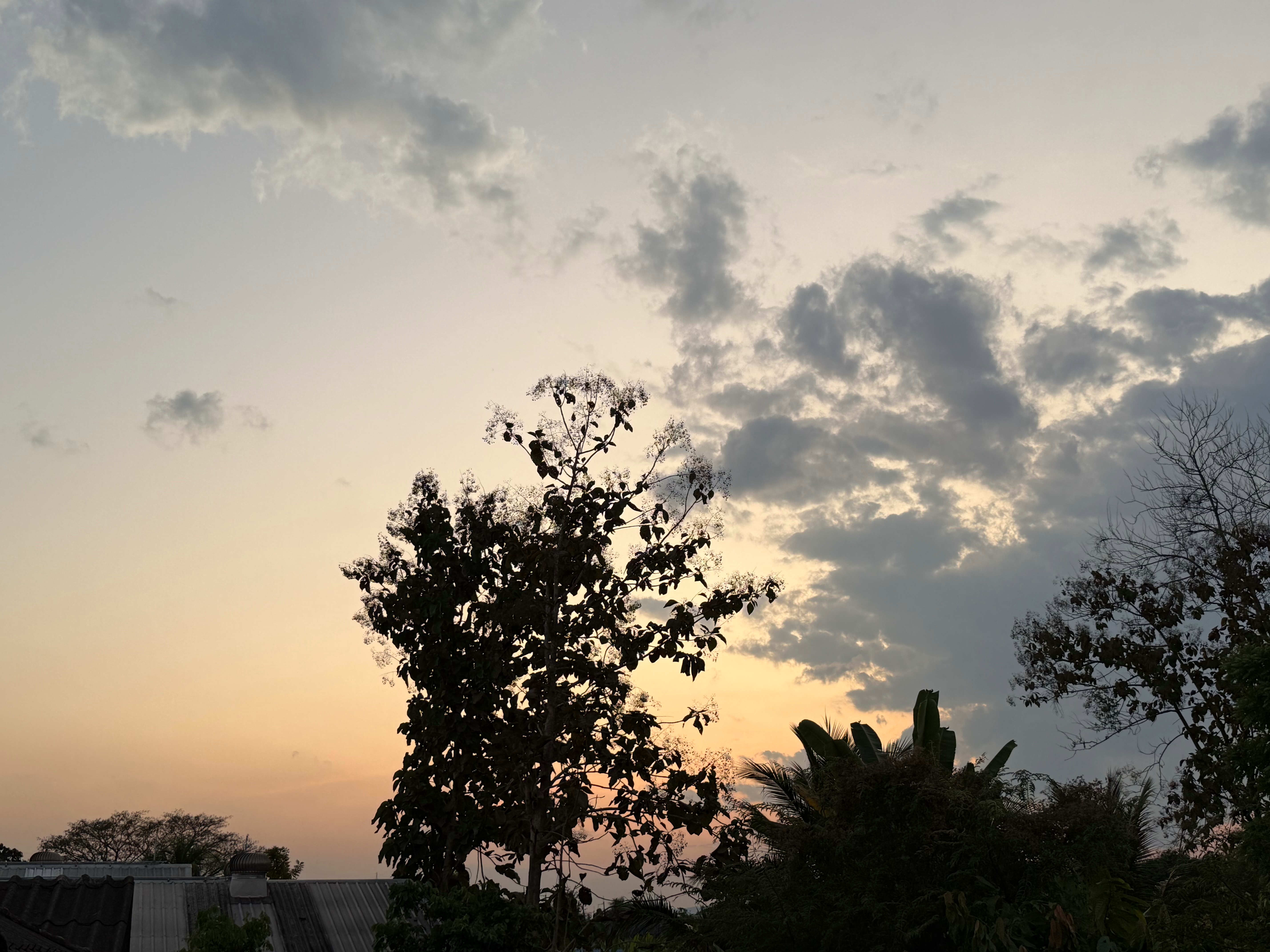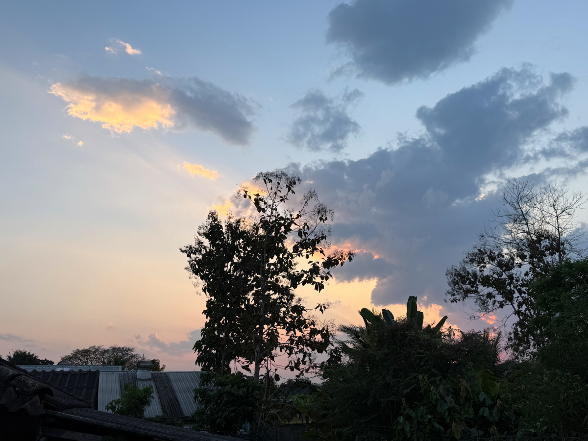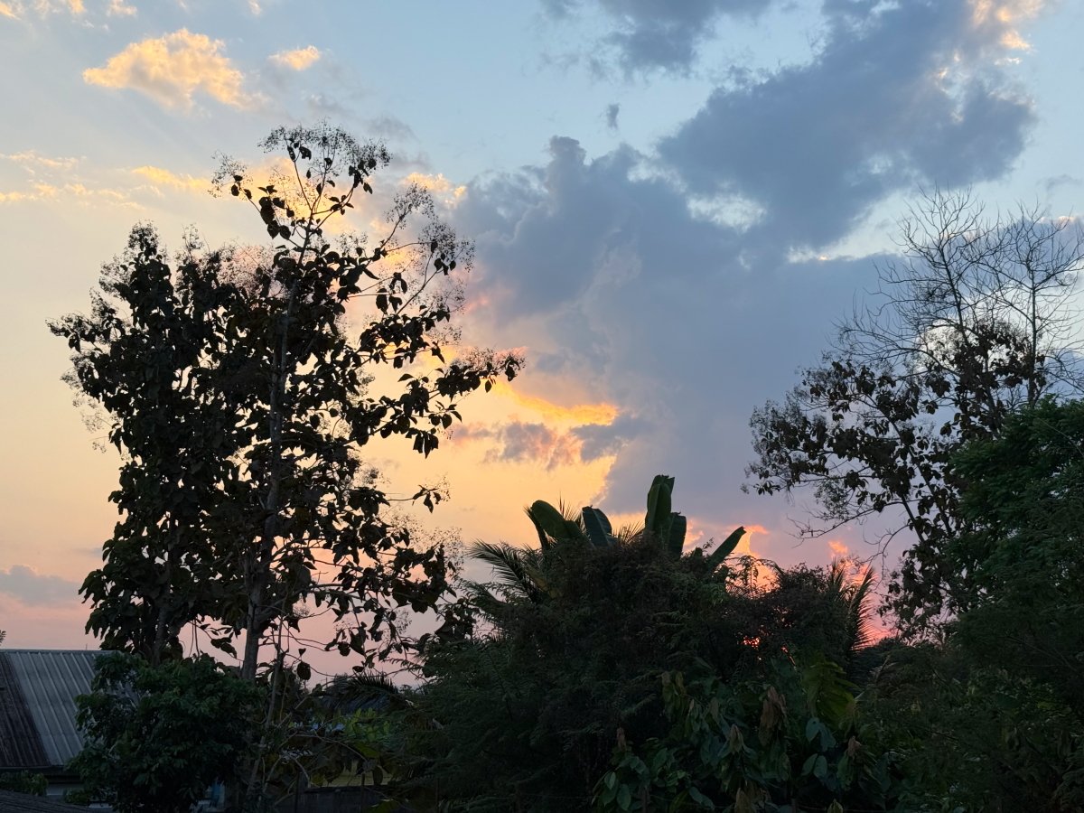夜明け前の月から早朝のチェンライ飛行場、庭のお花達と夕暮れまででした