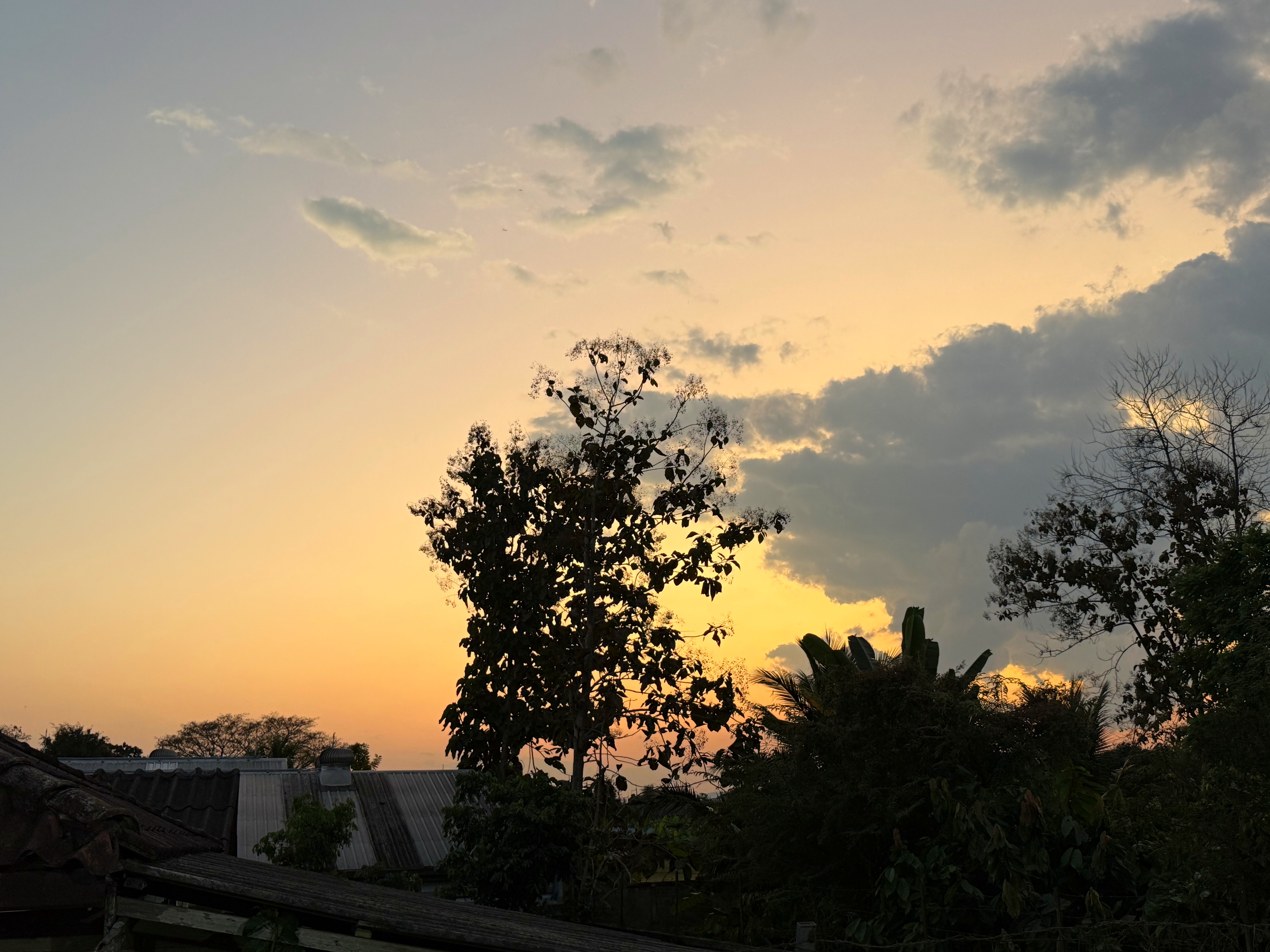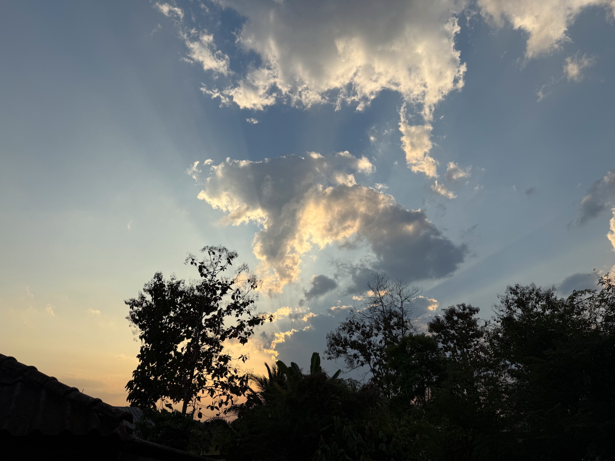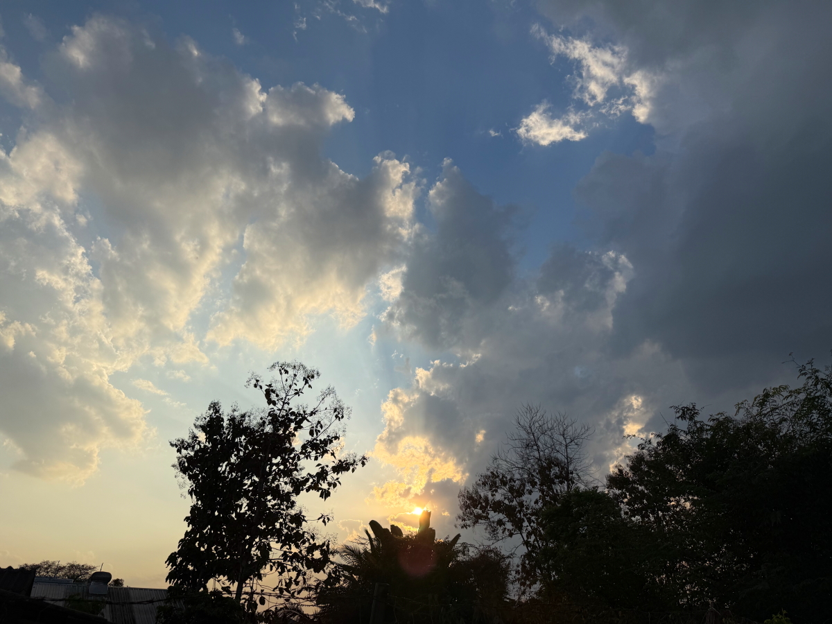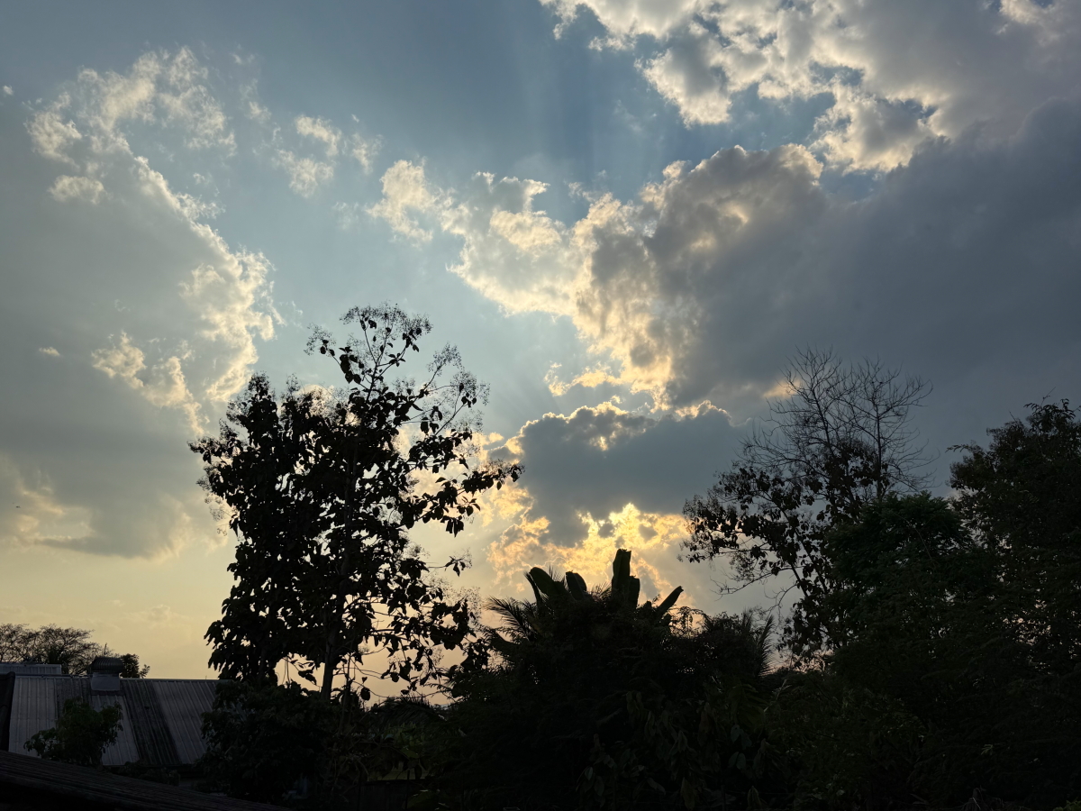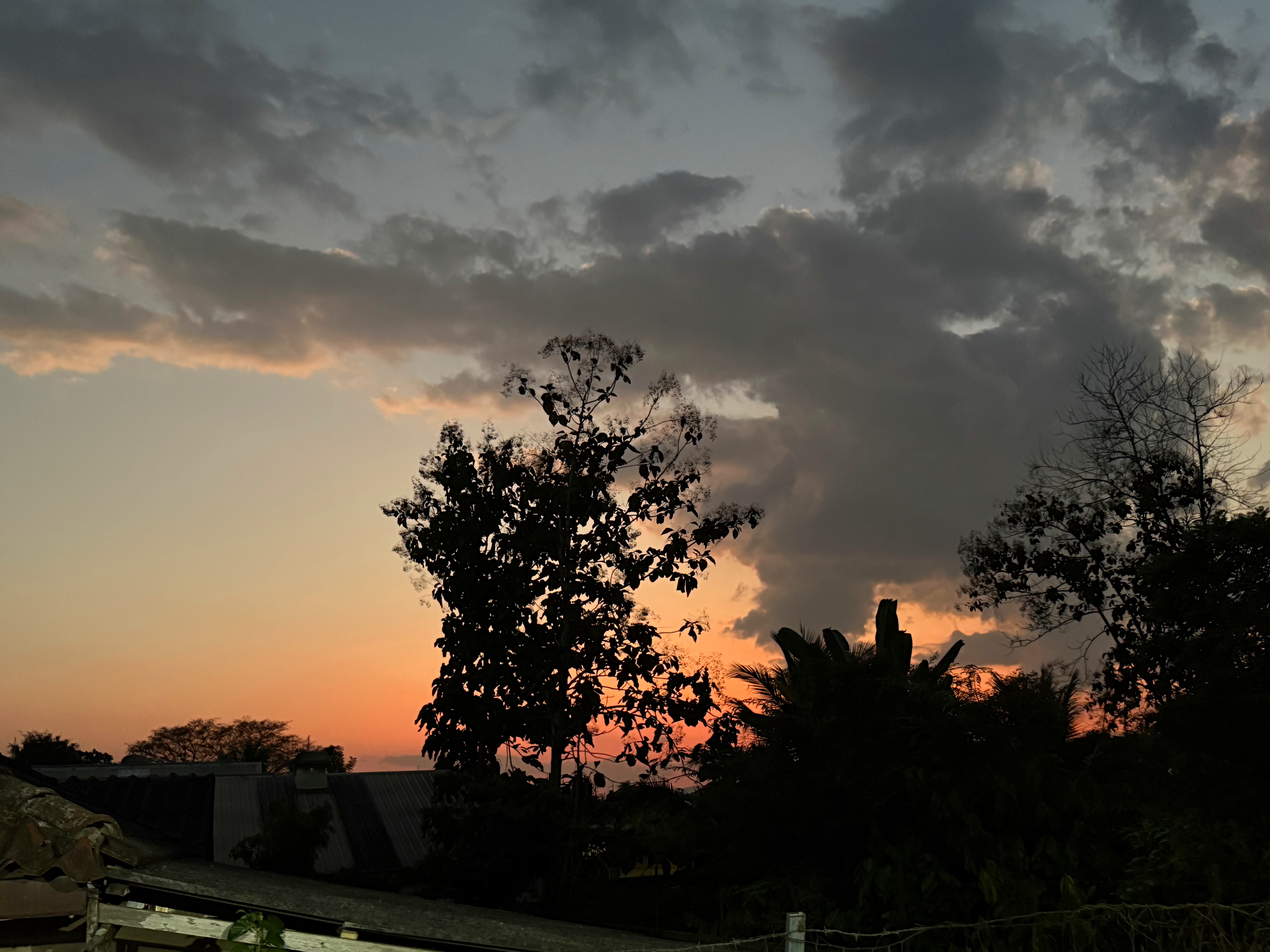夜明け前の月から早朝のチェンライ飛行場、庭のお花達と夕暮れまででした