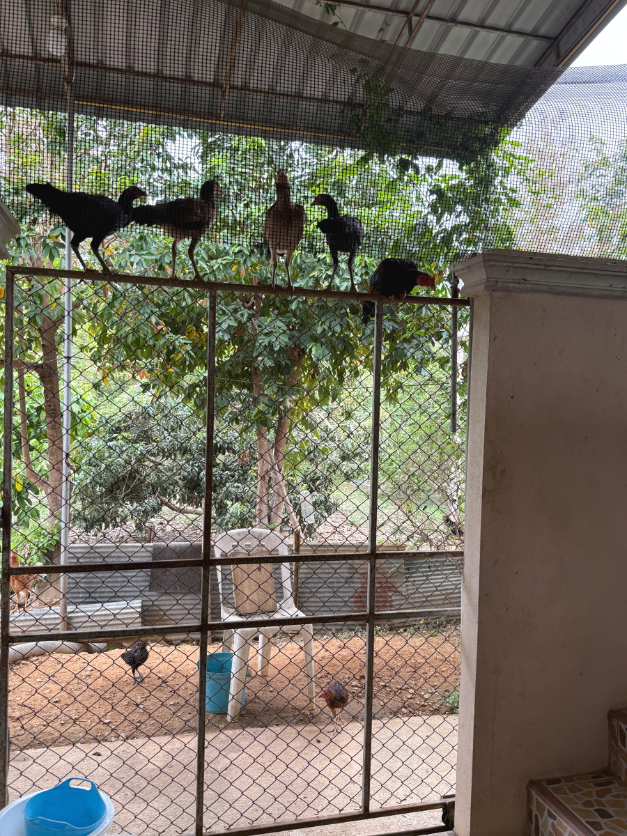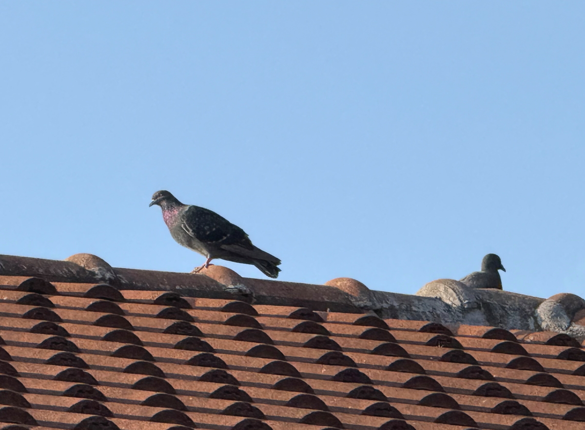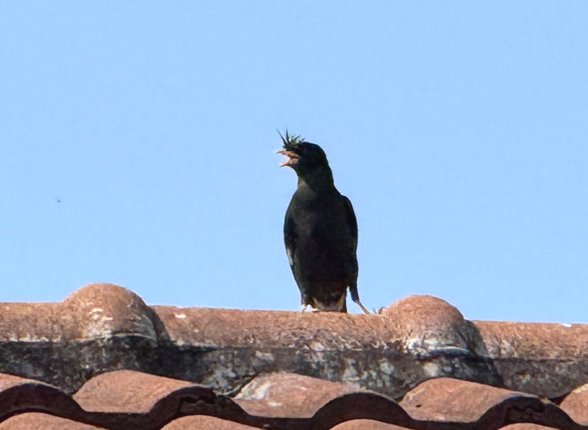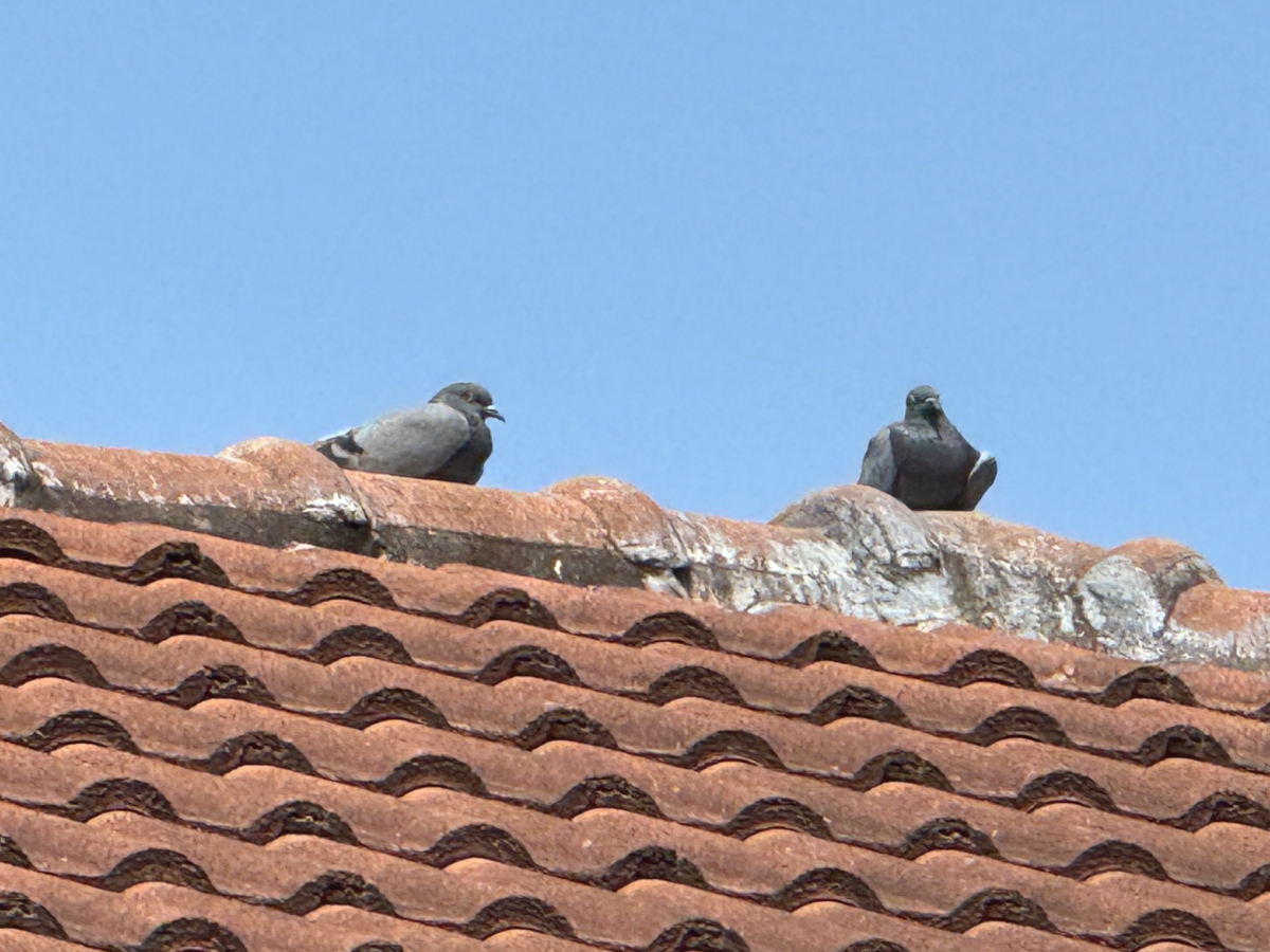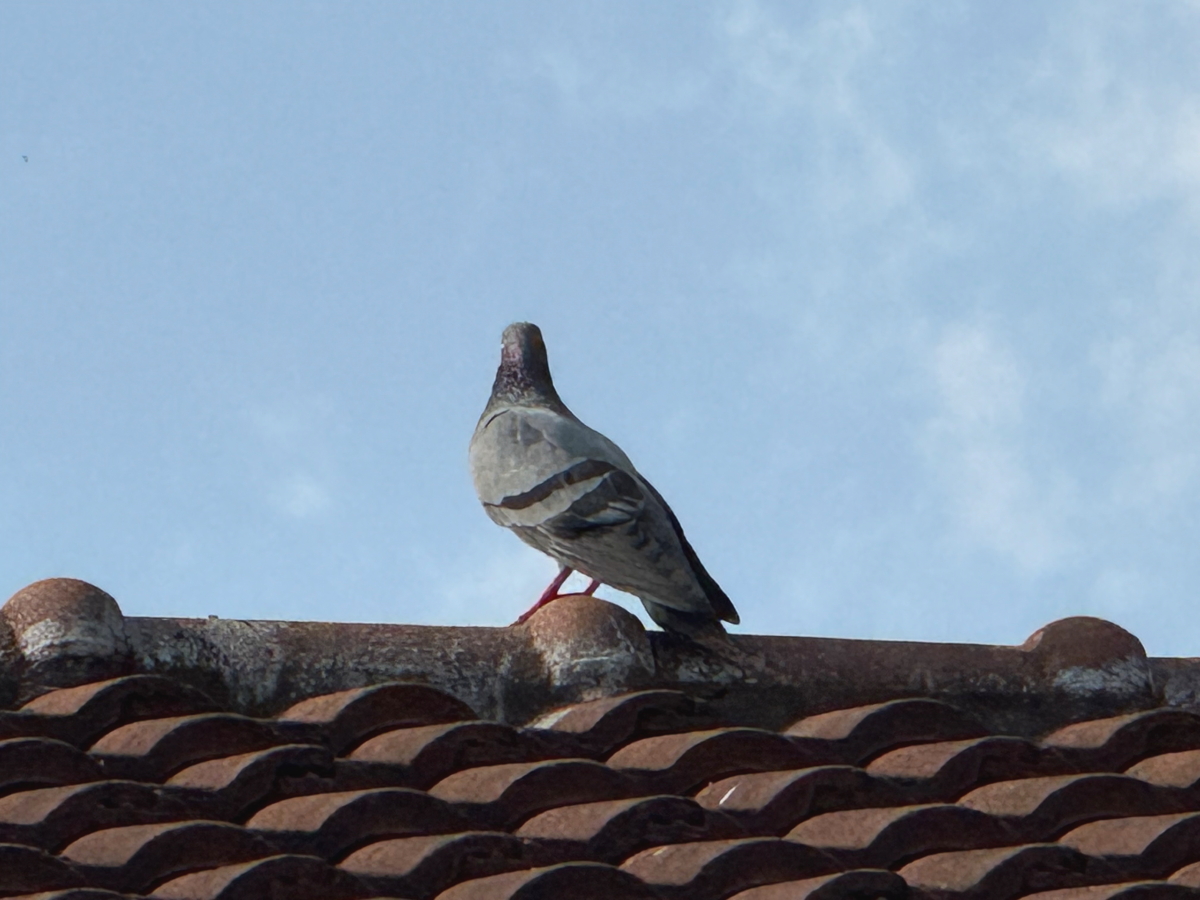 鳩と入れ替わりでこちらの鳥さんが屋根から見てます