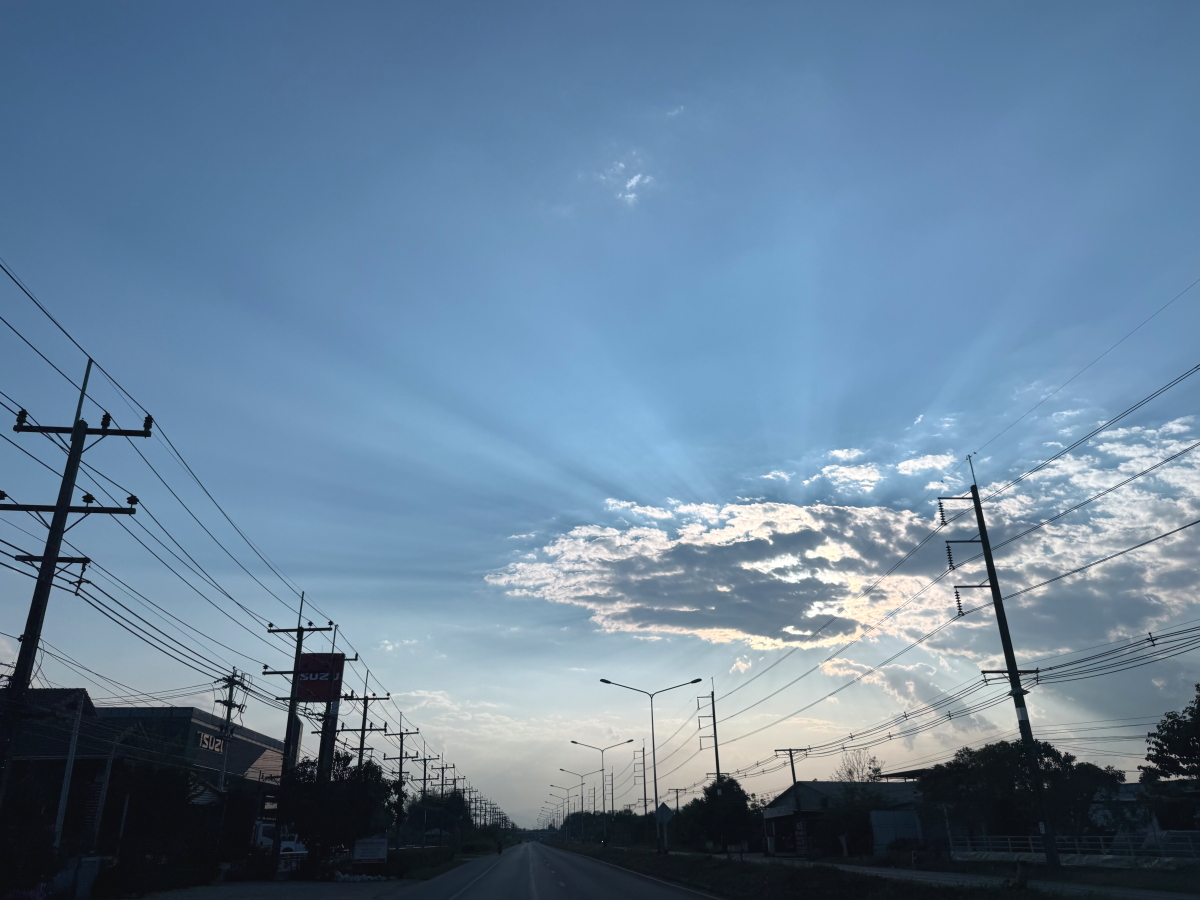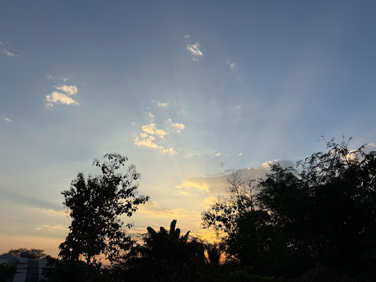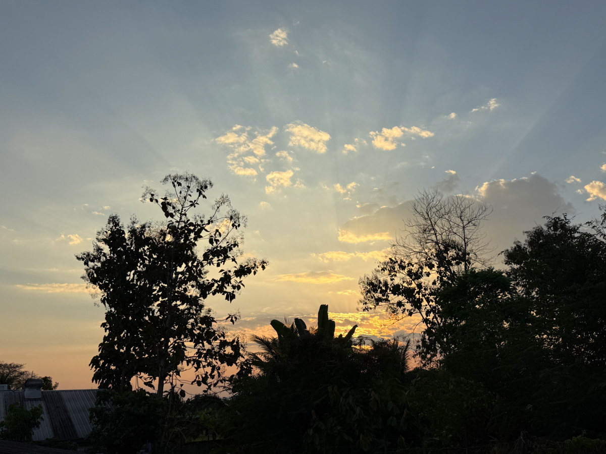 日没定点観測からの西の空にも、太陽からの天使の梯子が伸びました