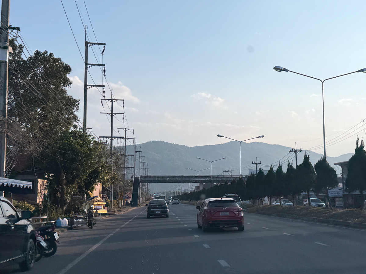 メーチャン近郊の山は、山肌がうっすらと見えるレベル