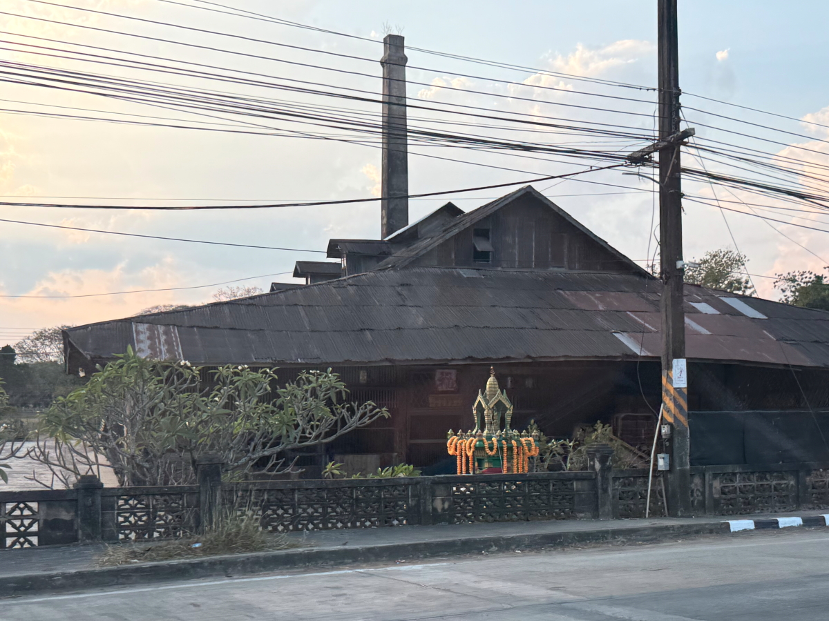 街中の国道沿いのお寺、仏舎利塔に西陽が当たってキラキラ