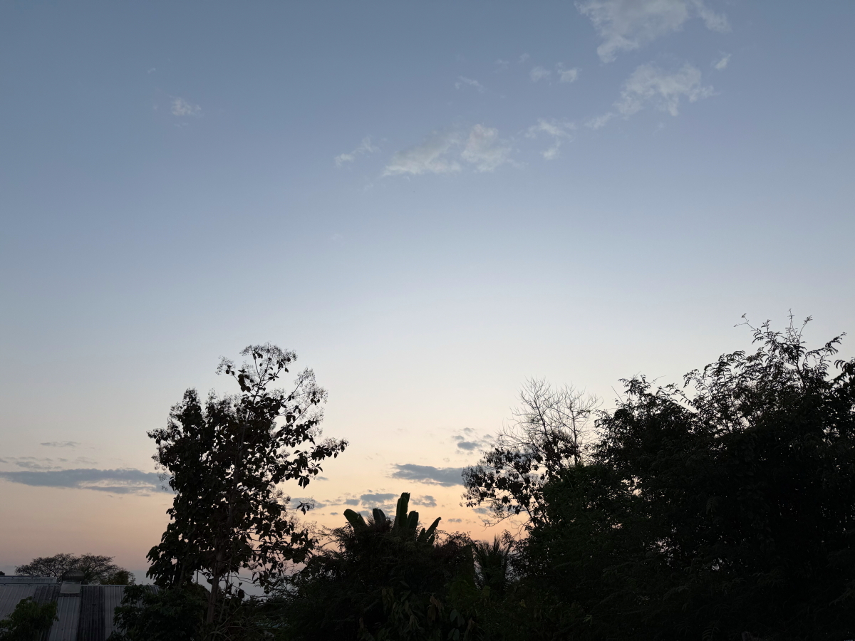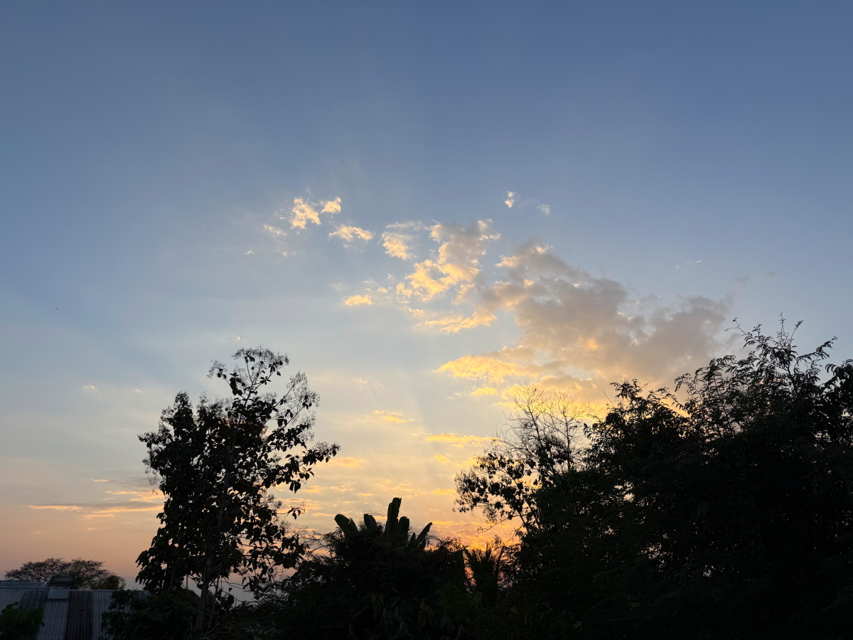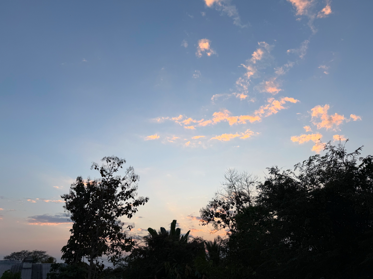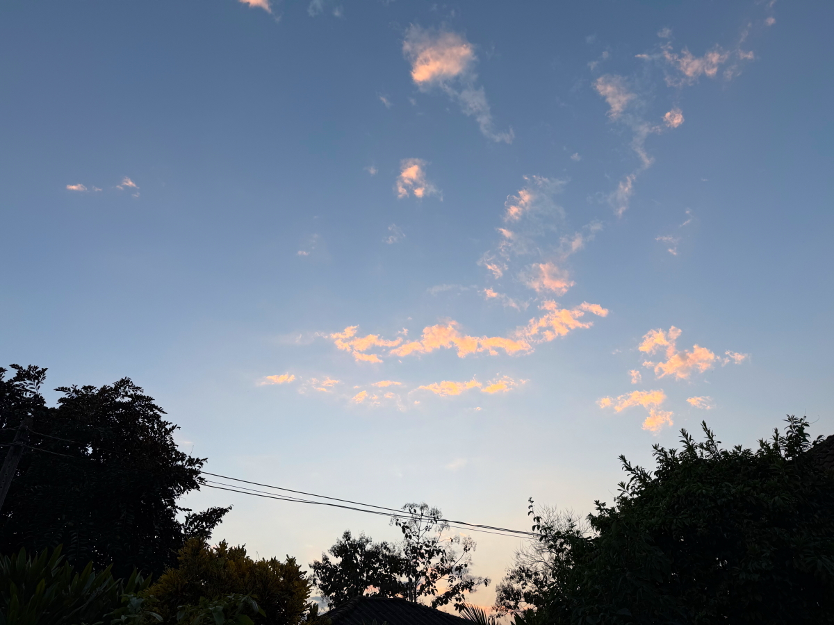 雲が多めですが、地平からの太陽の光でオレンジに染まってました