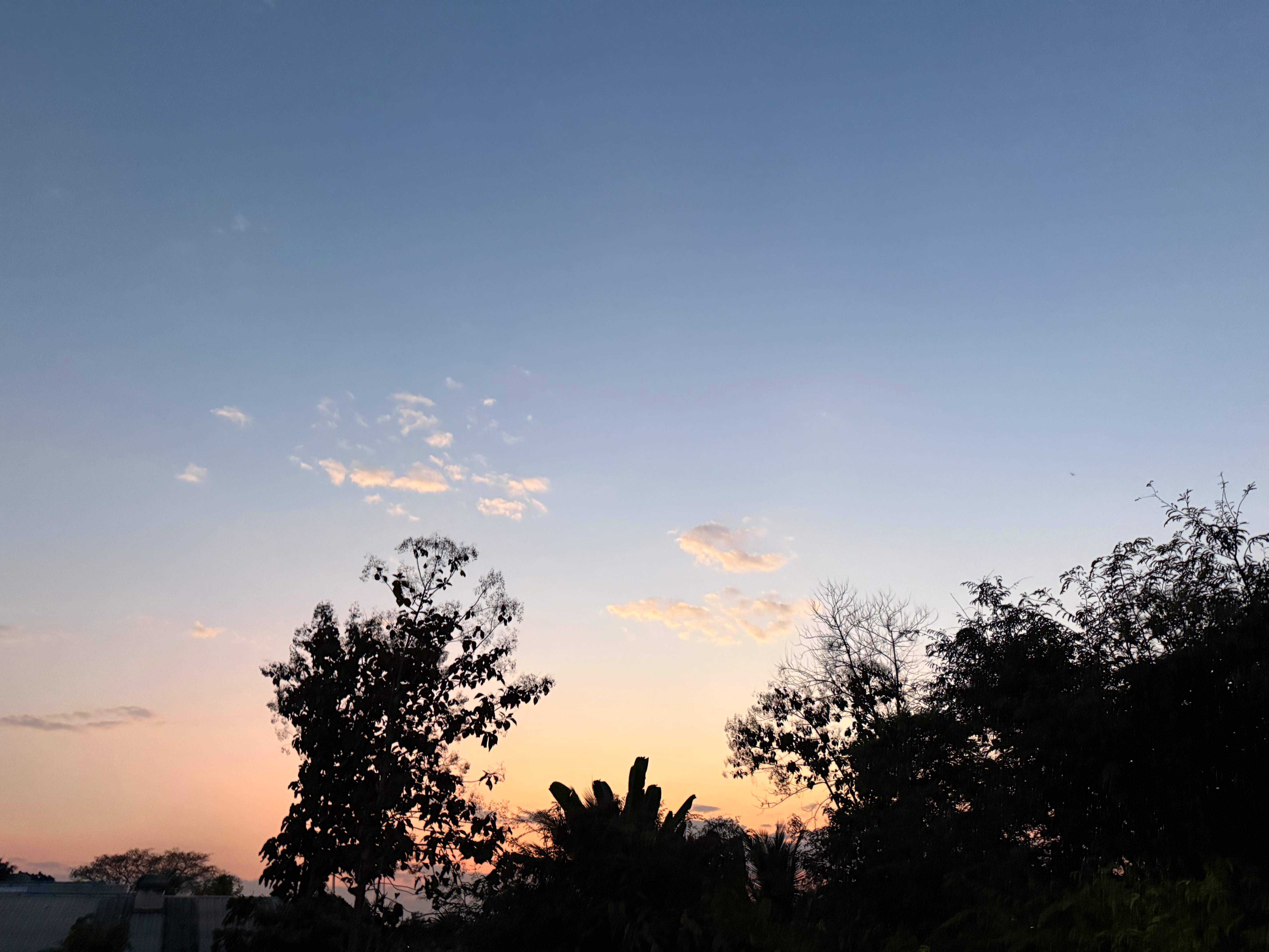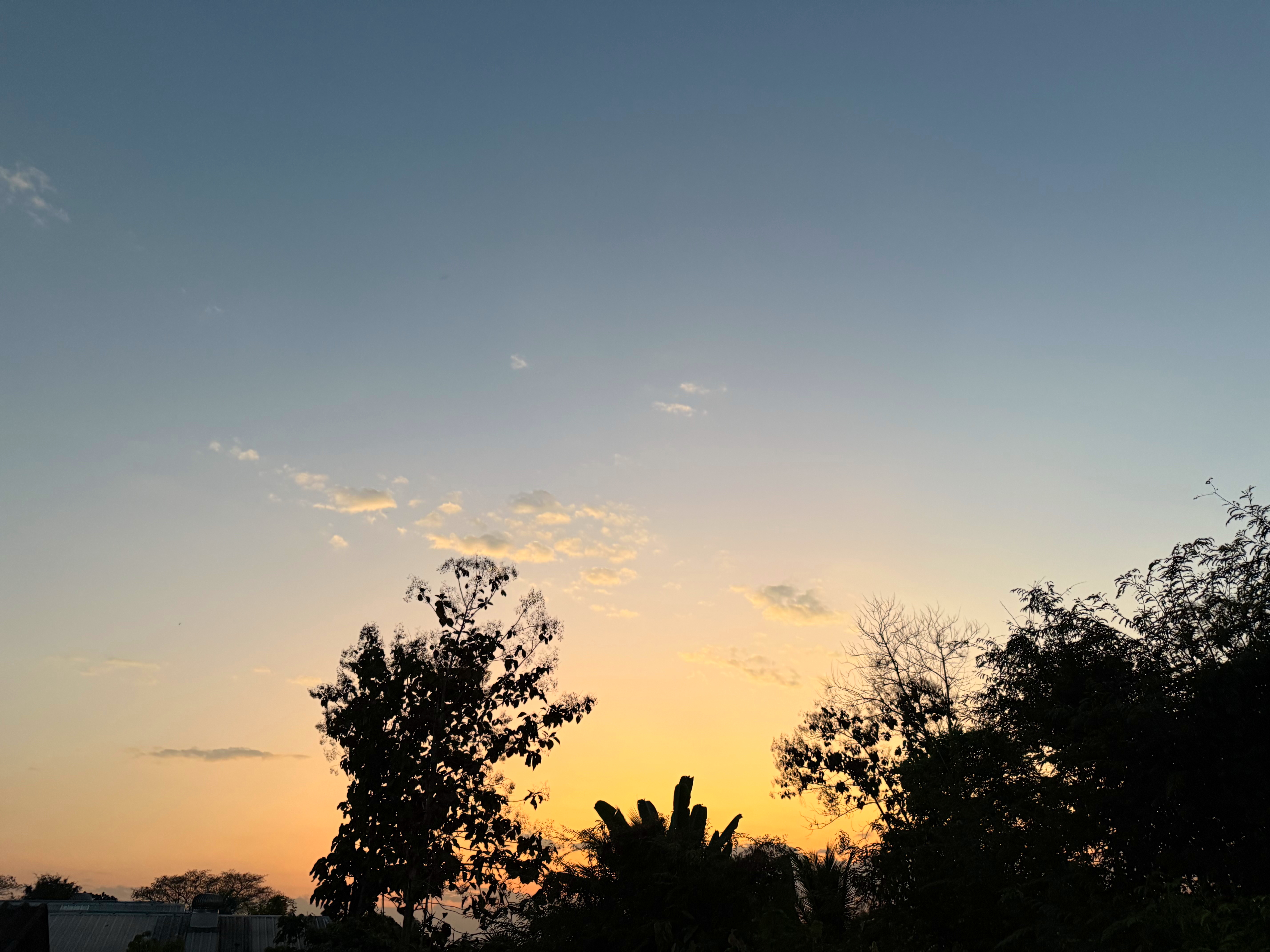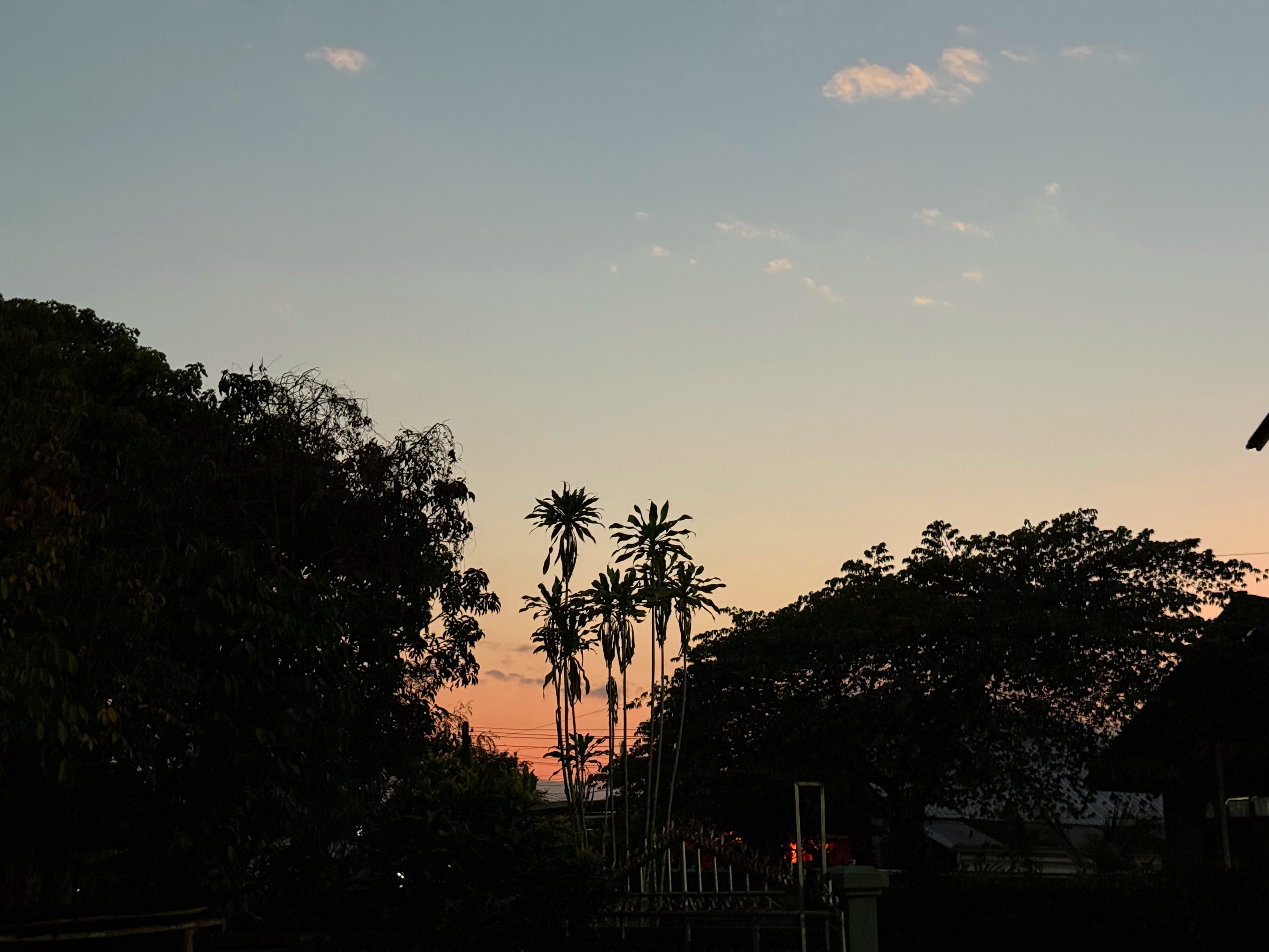 雲が多めですが、地平からの太陽の光でオレンジに染まってました