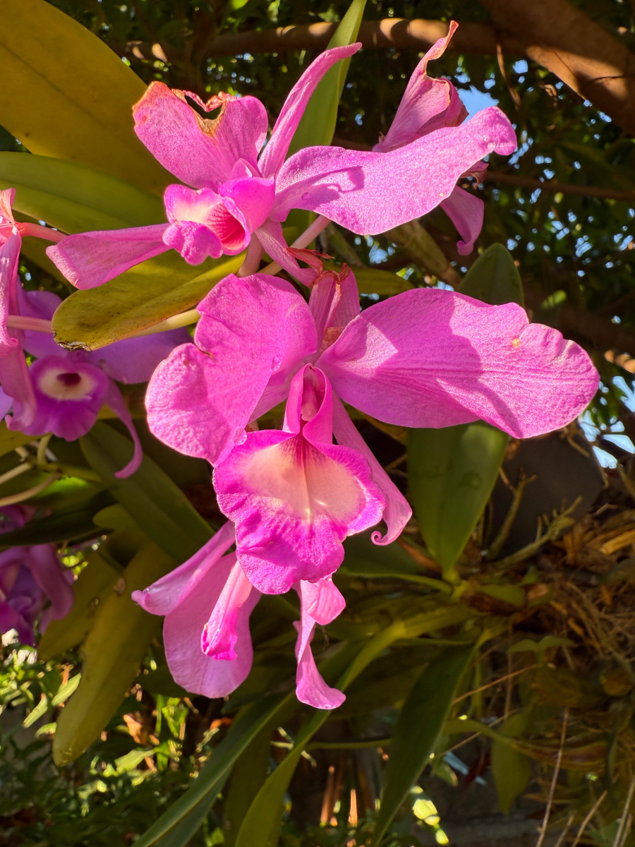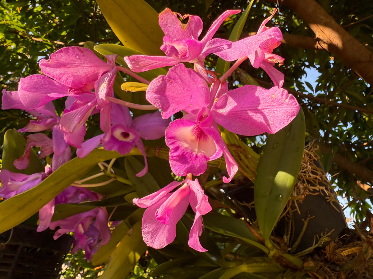 朝陽に染まって蘭のお花がおはよう!