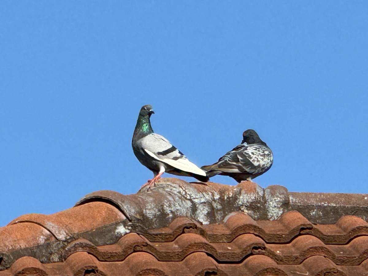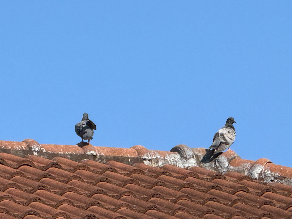 屋根上は鳩さん達が占領中