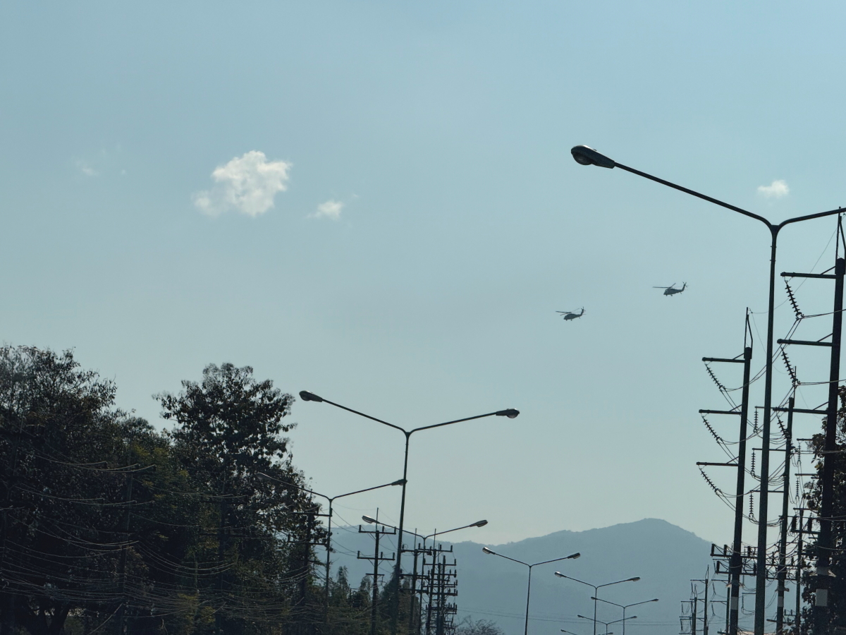 国道を南下したら、上空に軍用ヘリ