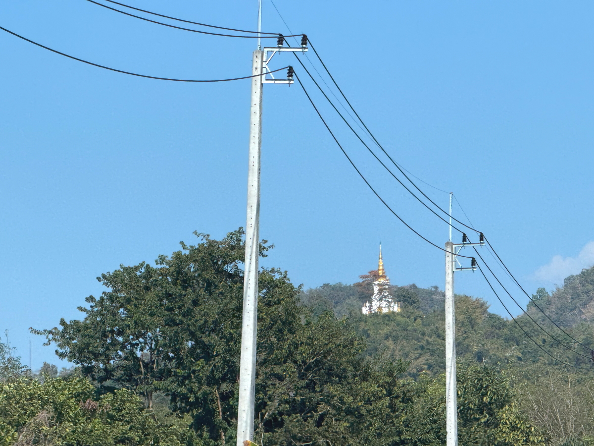 山の上のお寺も電柱の隙間から撮影