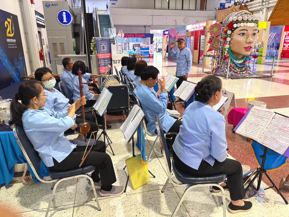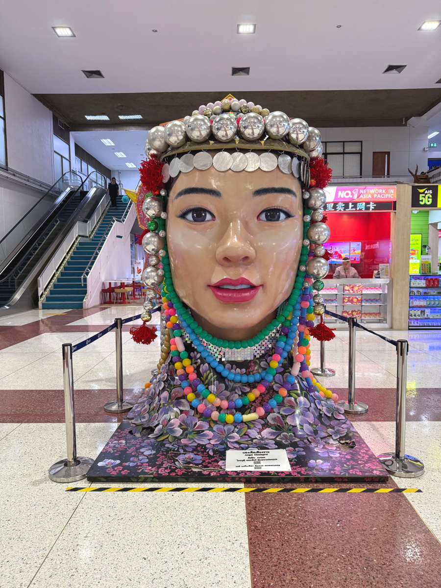 空港敷地内の仏教的な金のオブジェ