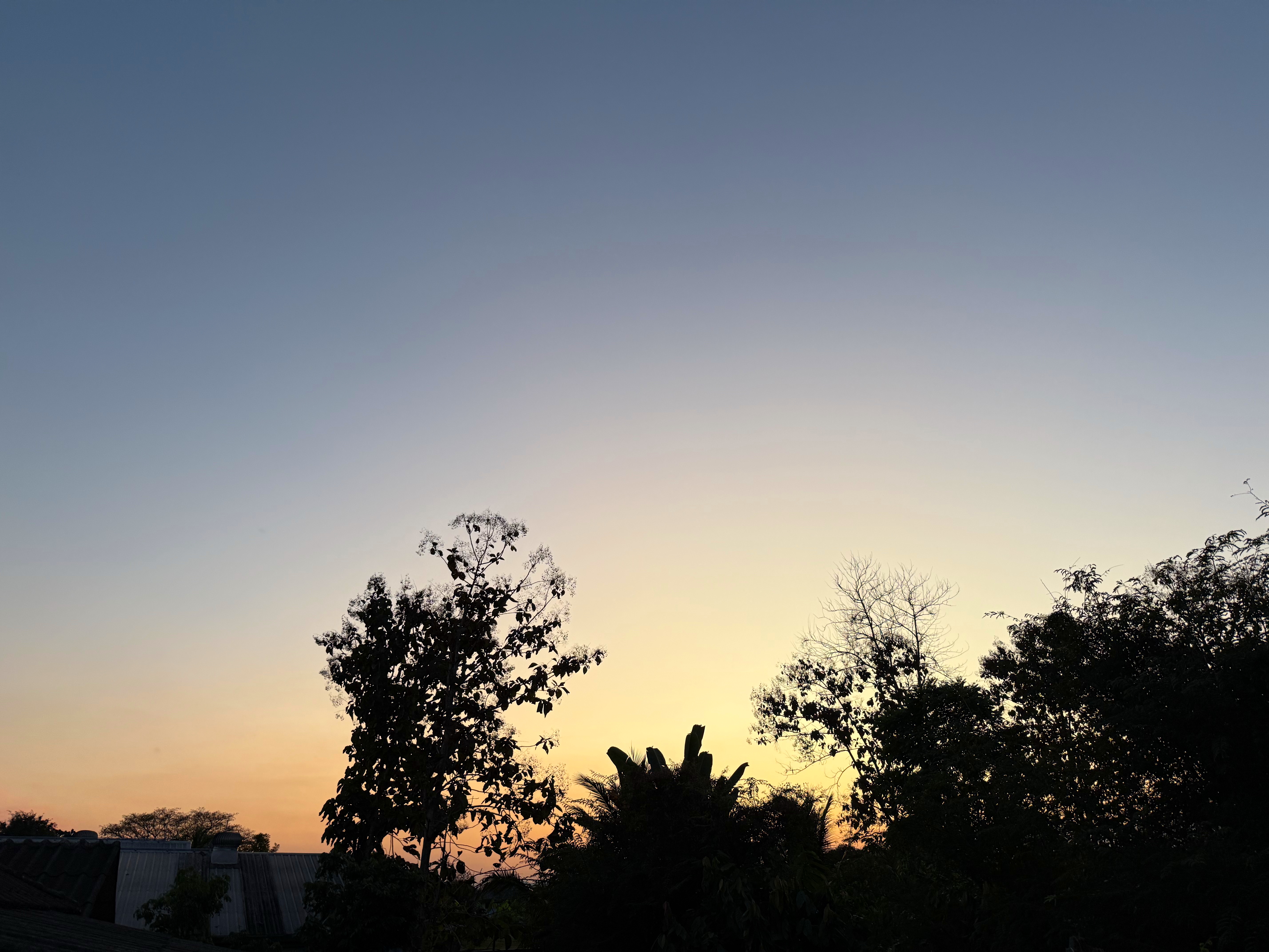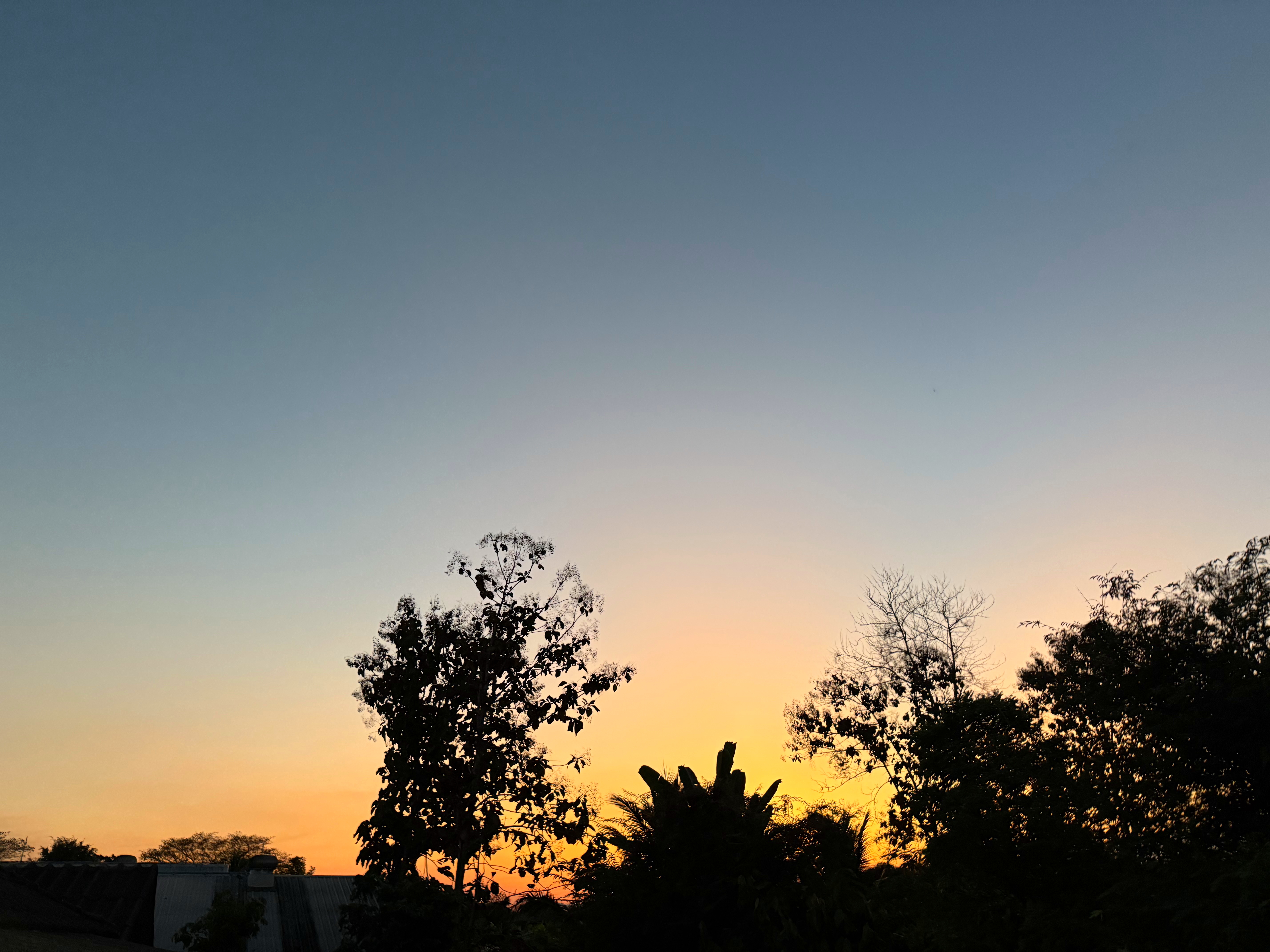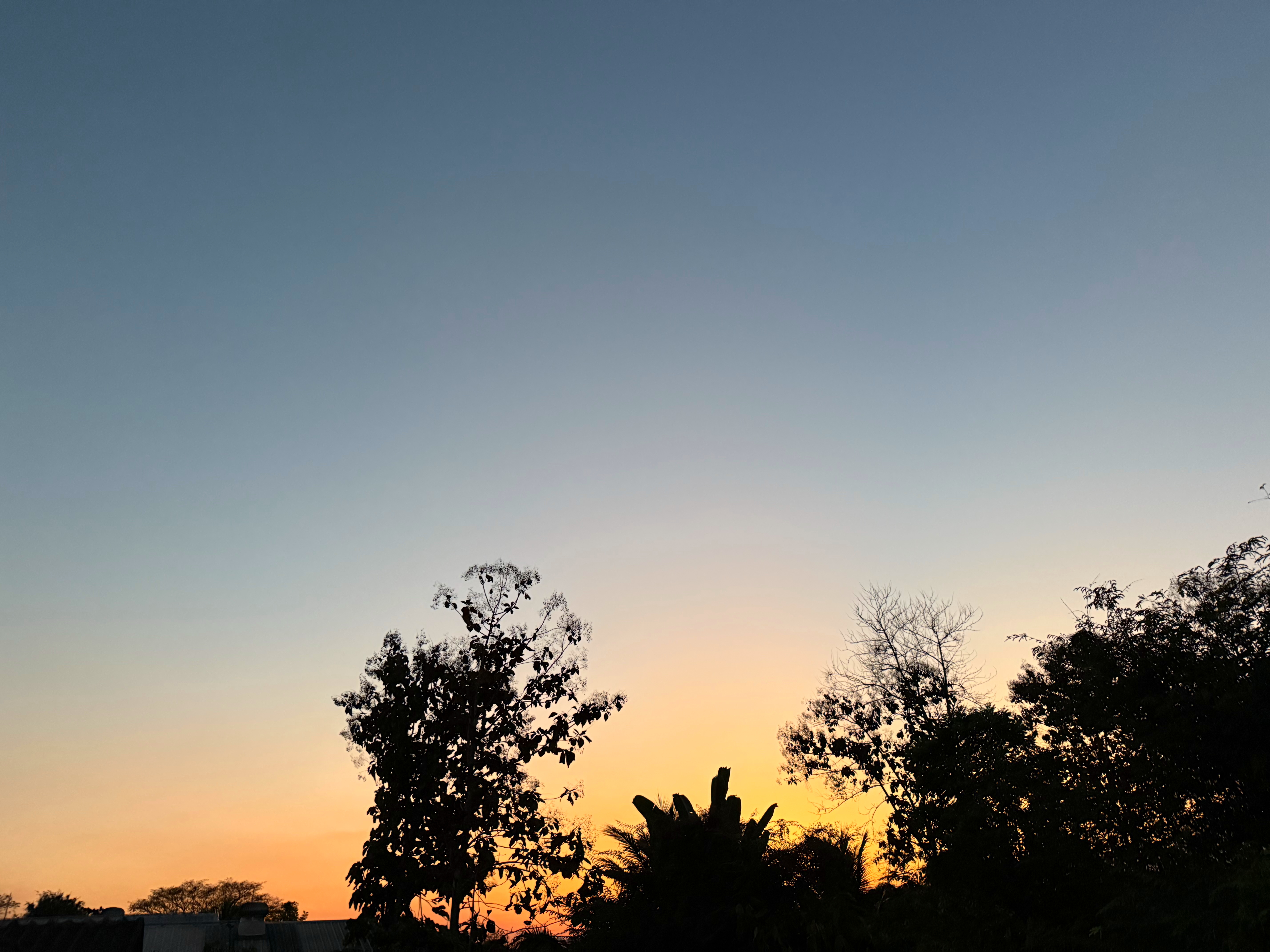 オレンジの光が地平から上に向かって青空を割ってます