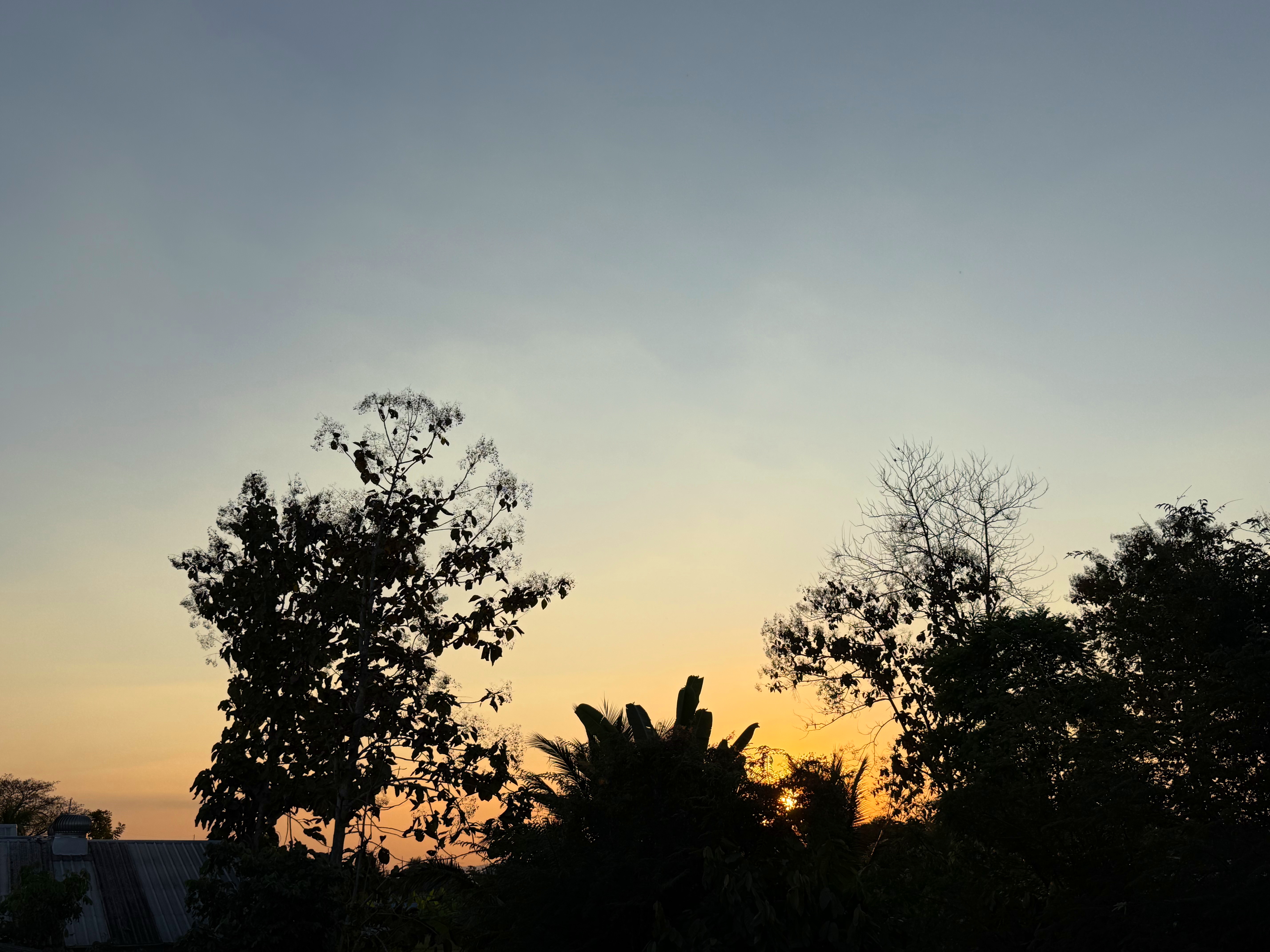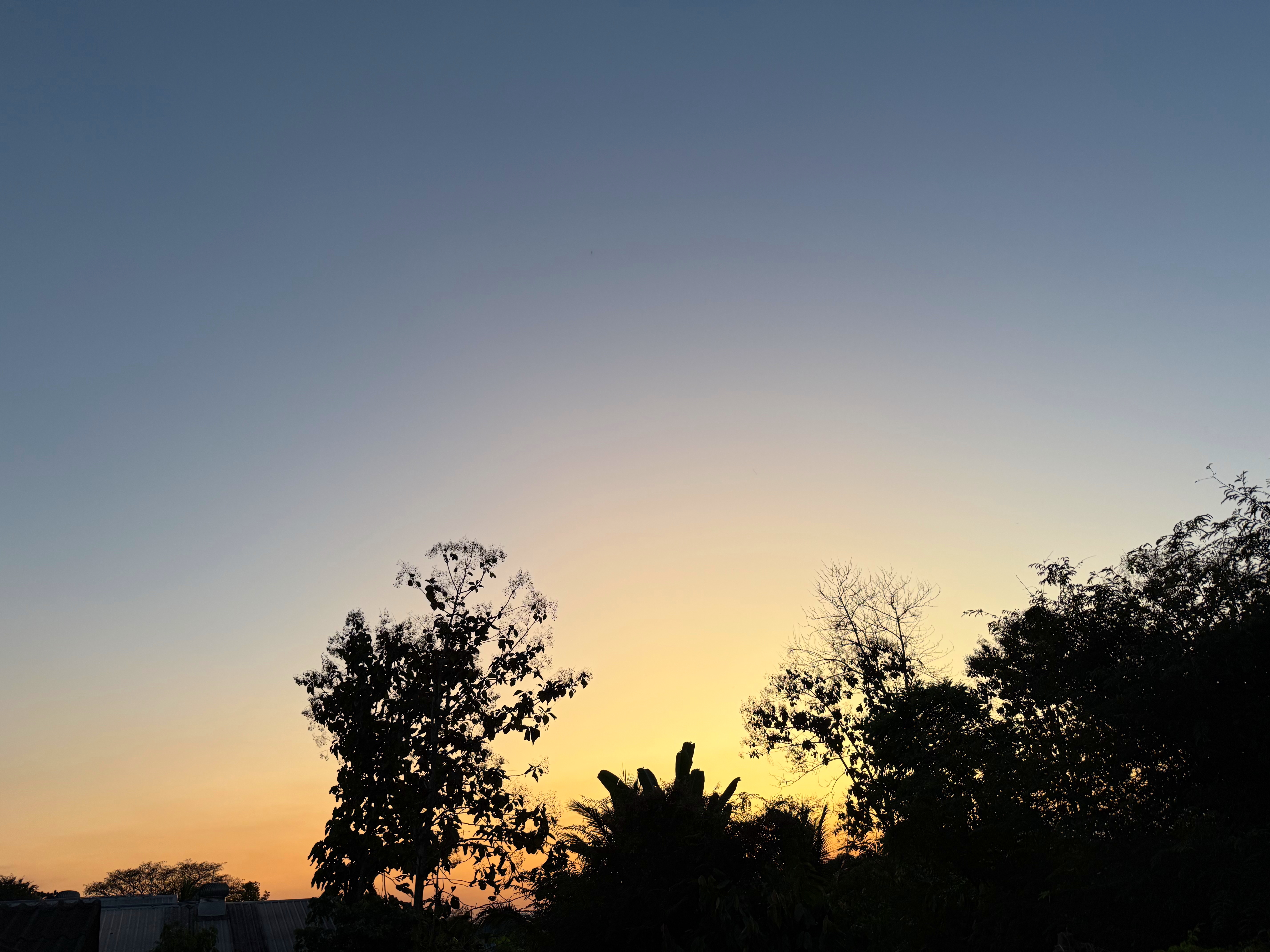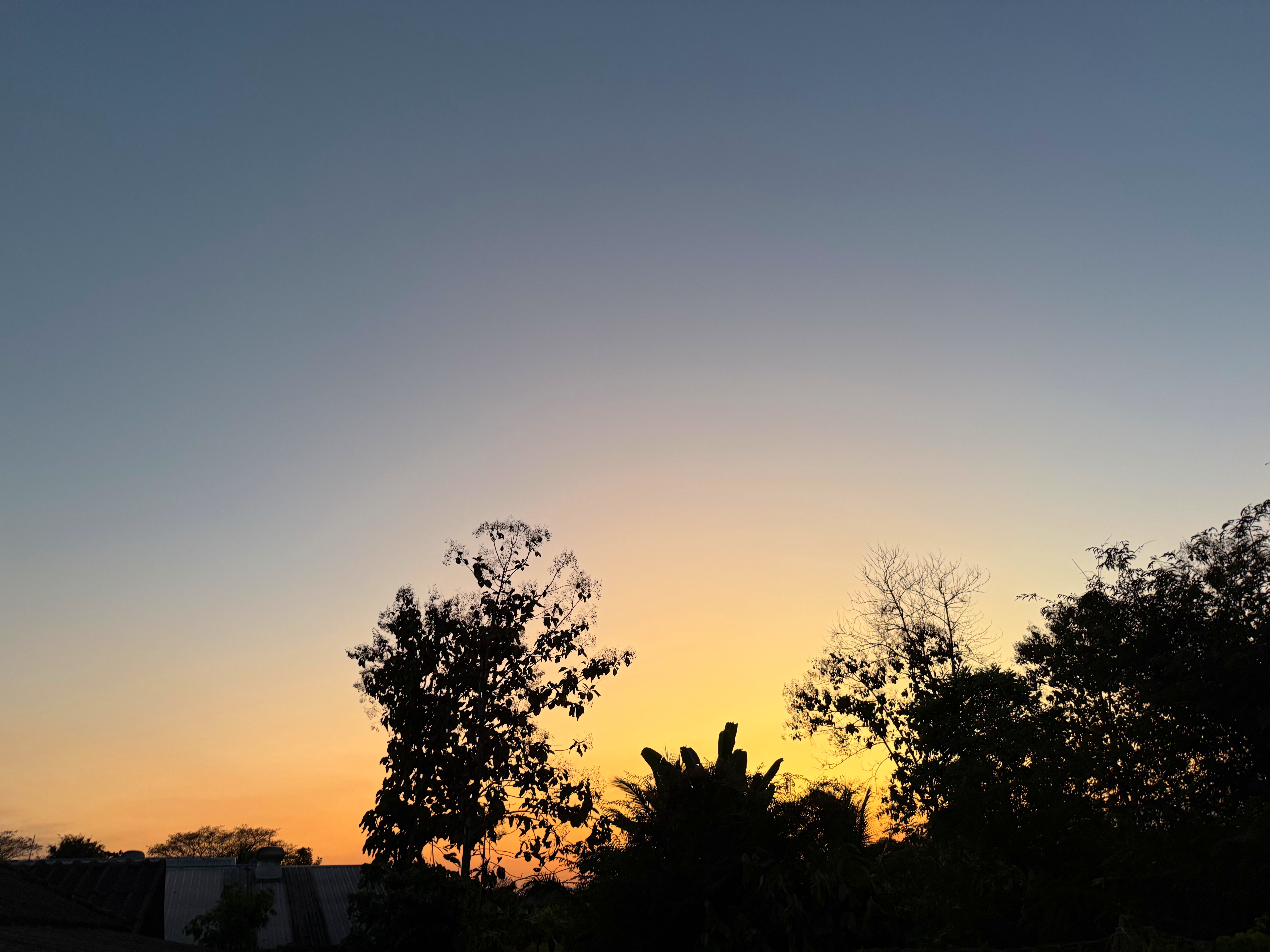 オレンジの光が地平から上に向かって青空を割ってます