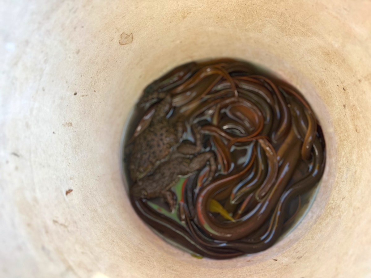 ドジョウとヒキガエルのバケツ