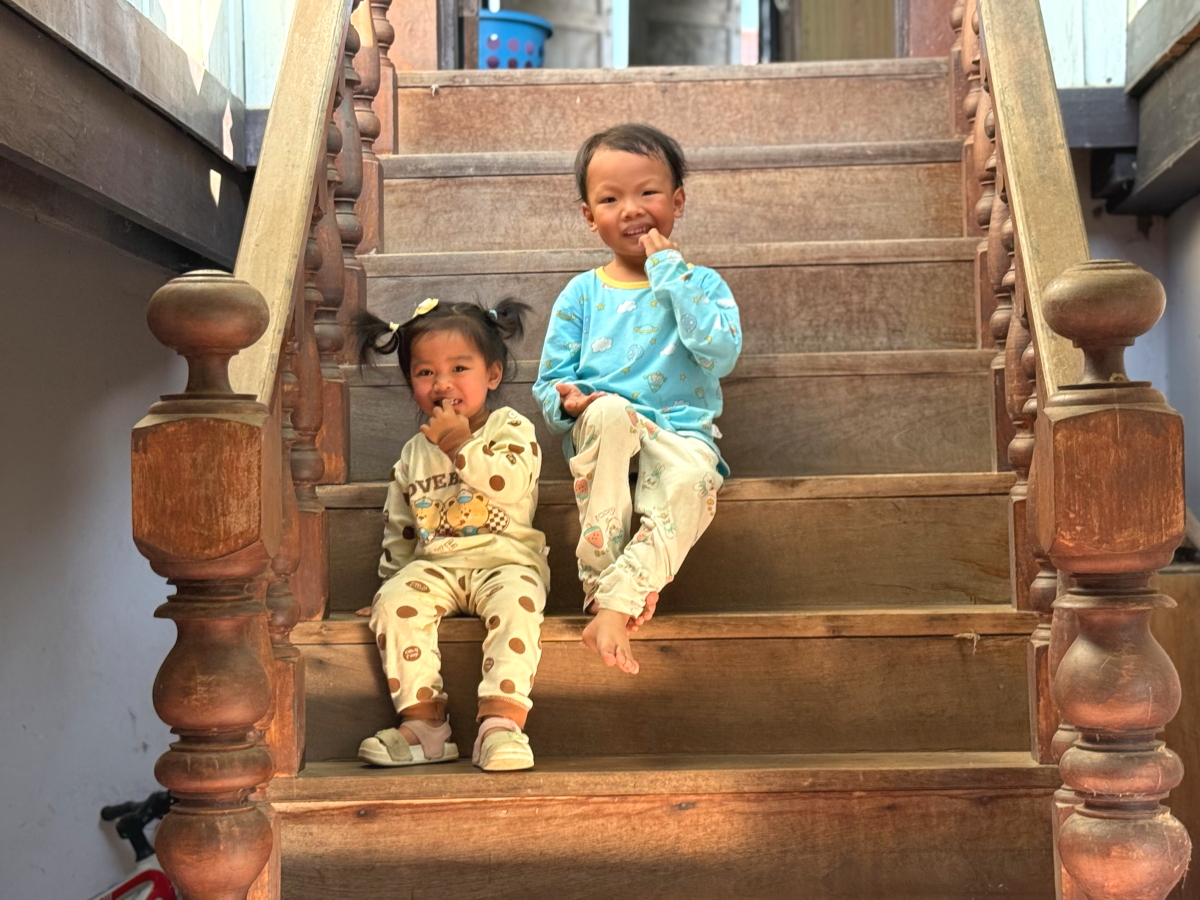 息子は従兄弟の女の子と階段からお祝い