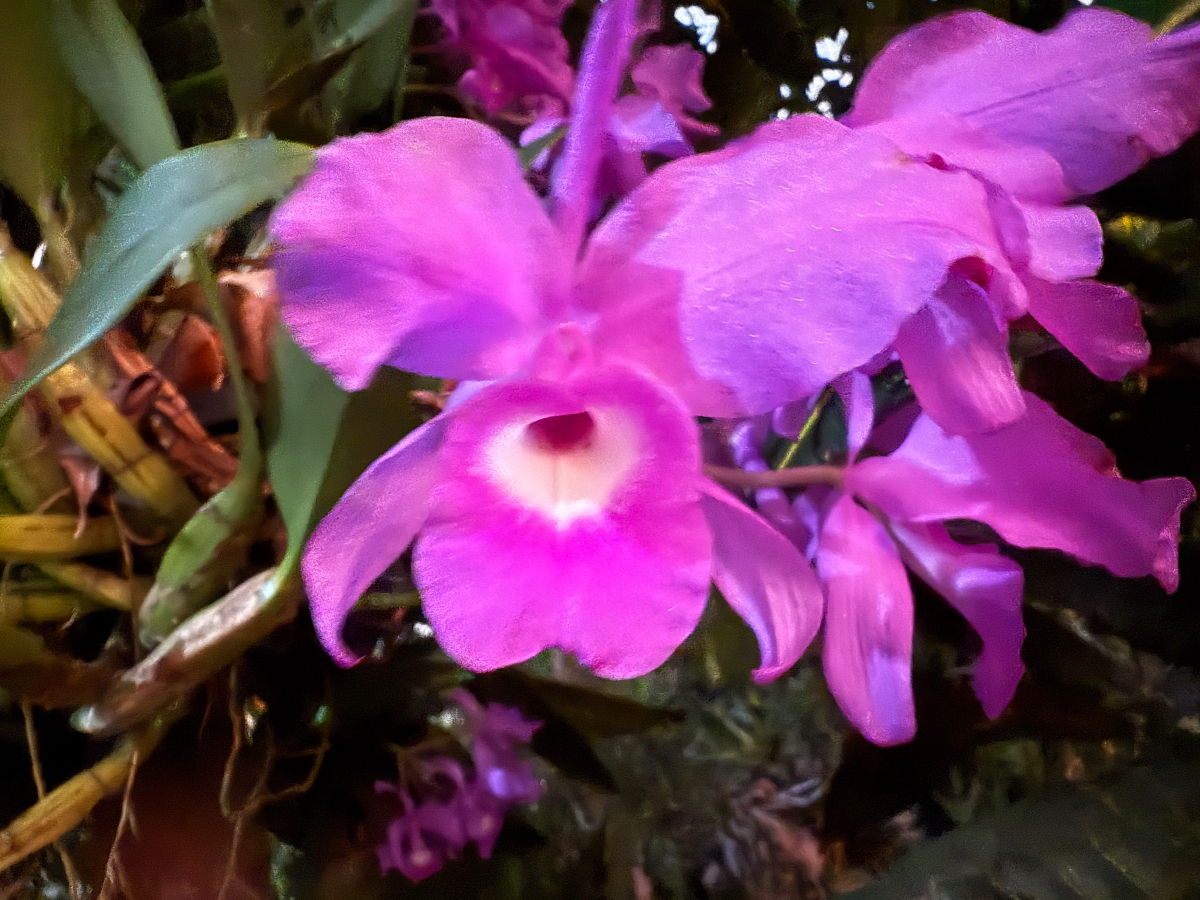 夕暮れの光で蘭のお花が微妙な色合い