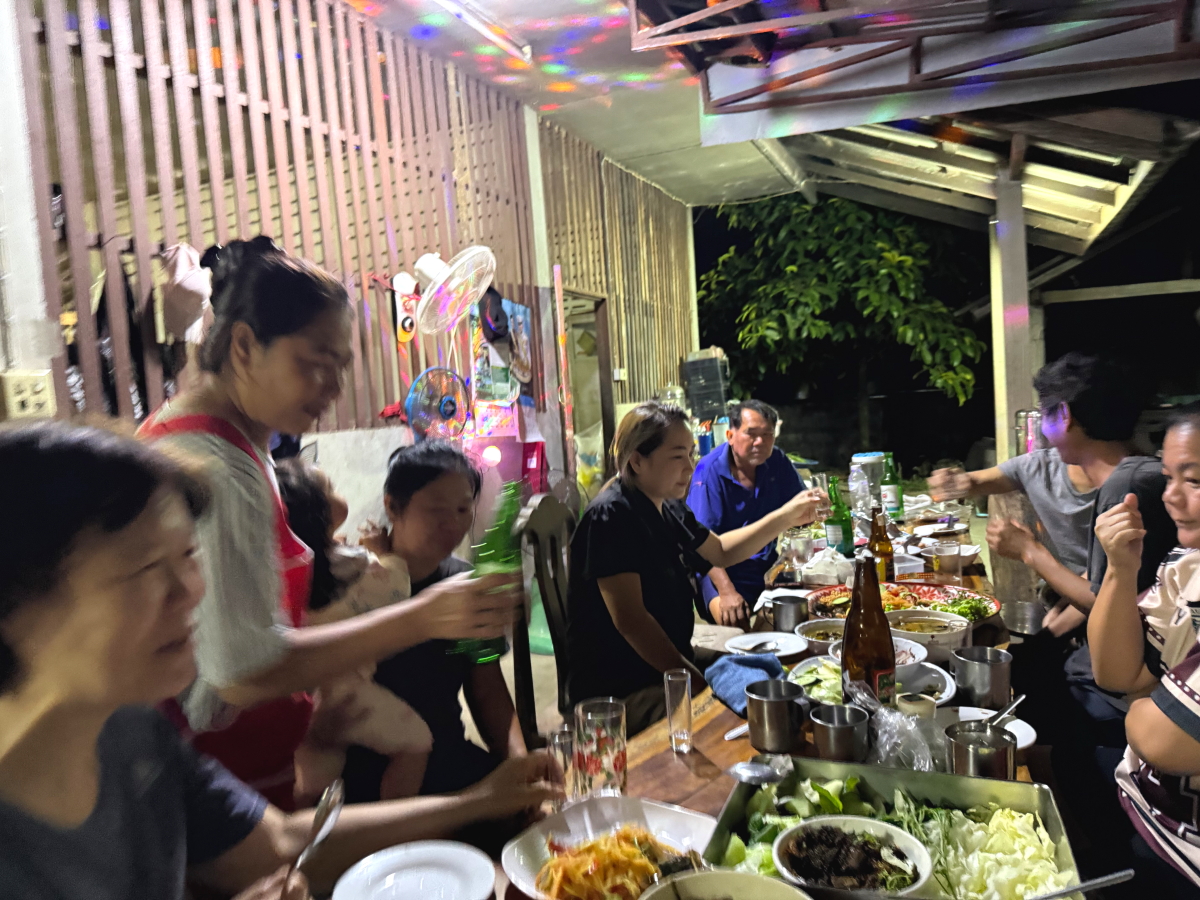 タイの農村部の集落は親族の集まりなので、お祝いにはご近所が集まります