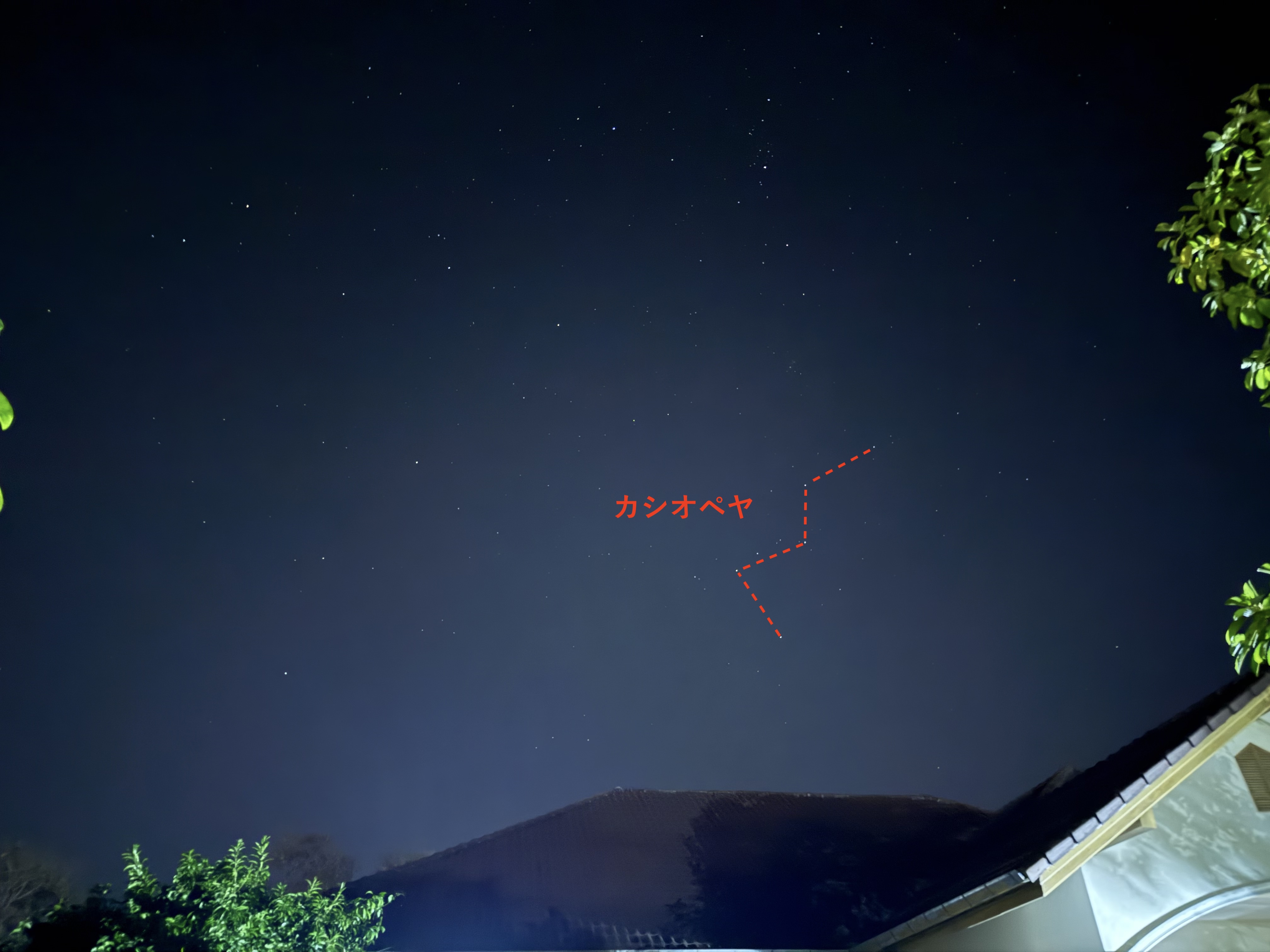 カシオペヤの周りにはアンドロメダとペルセウスが写っていますがトレースは無し