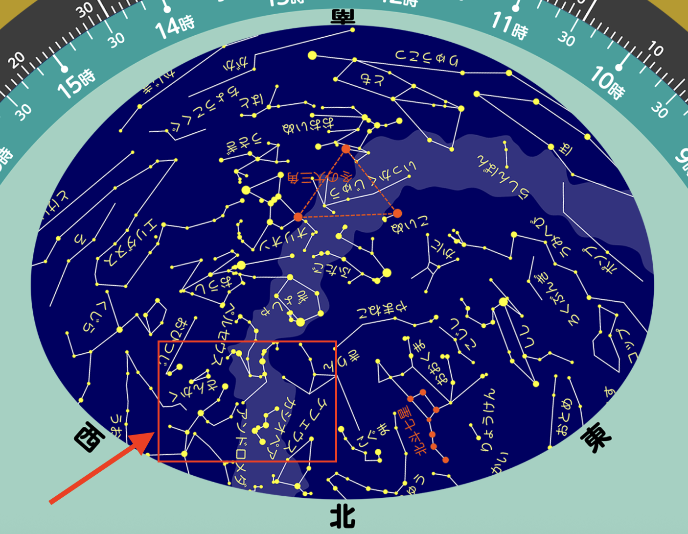 写真は星空全体で見ると、だいたいこの部分