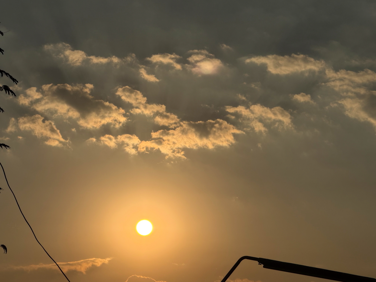 地平の雲が綺麗だったで、お日様と雲のアップ