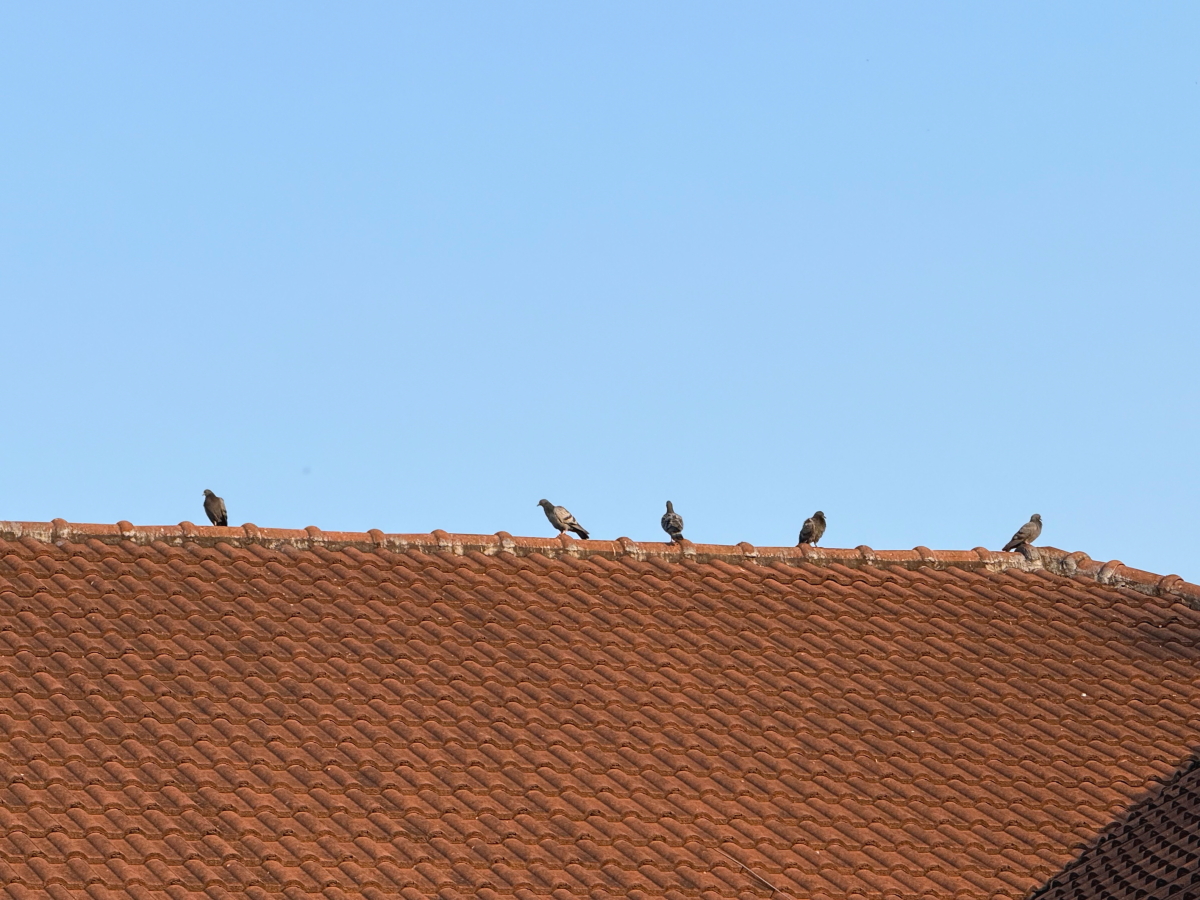 屋根上は鳩さん達の世界です