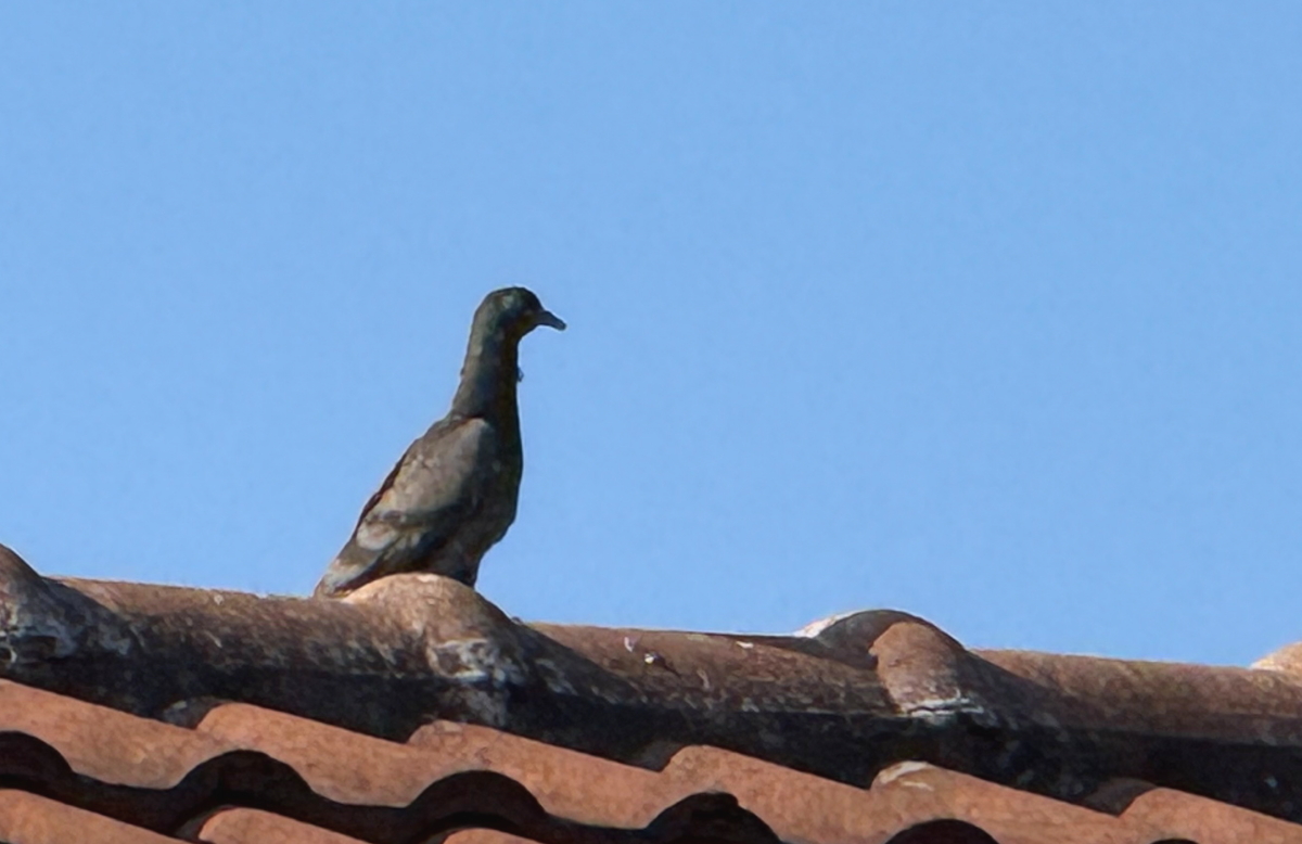 屋根上の鳩さん、こちらを見つめてます