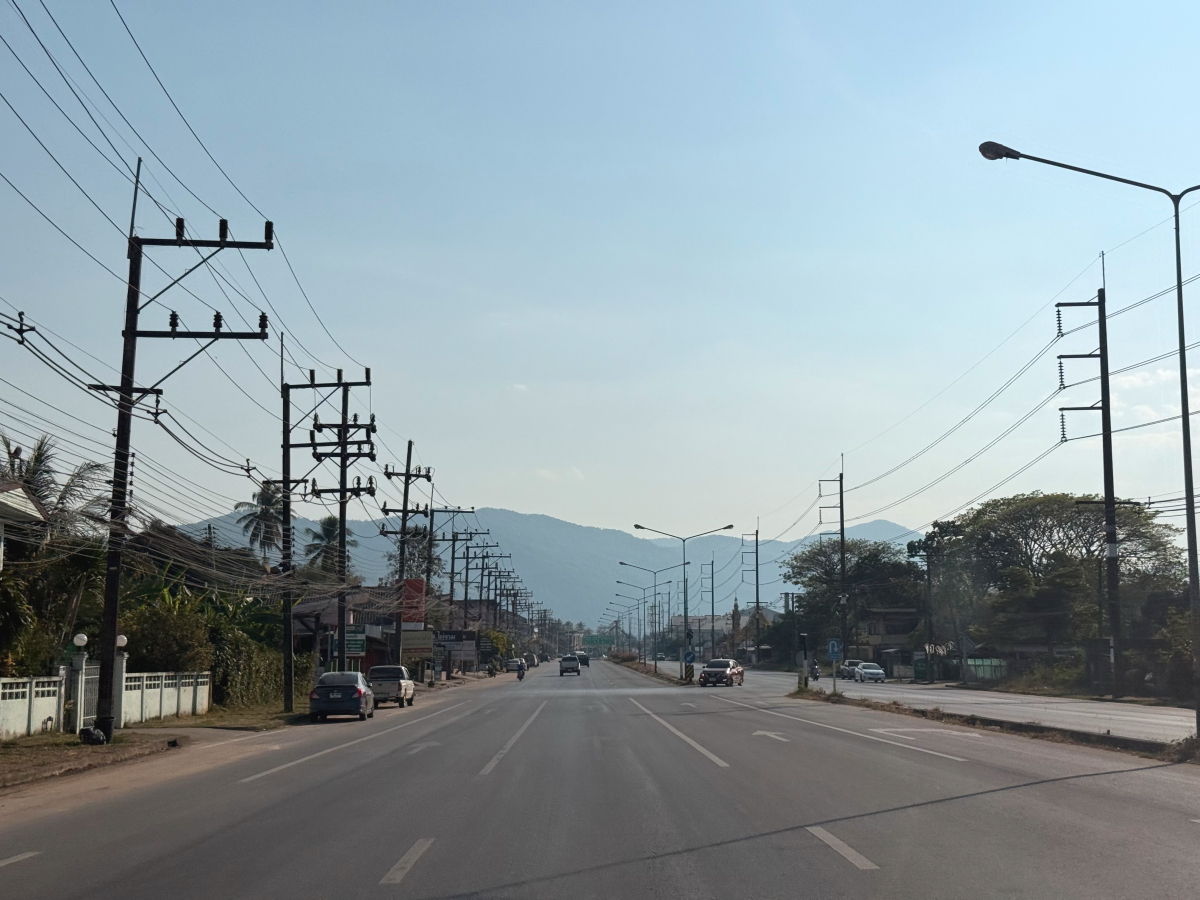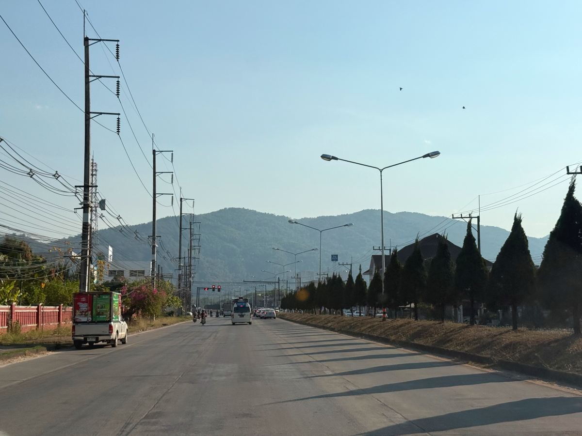 国道を南下してメーチャンの街に向かいます、山々はいつもの通り完全にかすみました