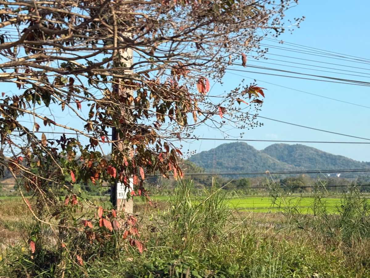 メーチャン郊外の山も山肌がなんとか見えるレベル