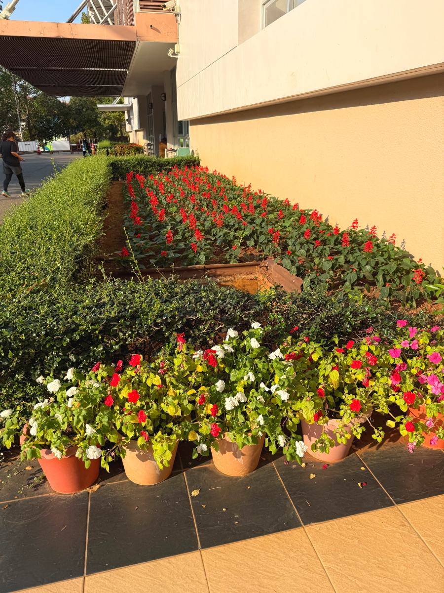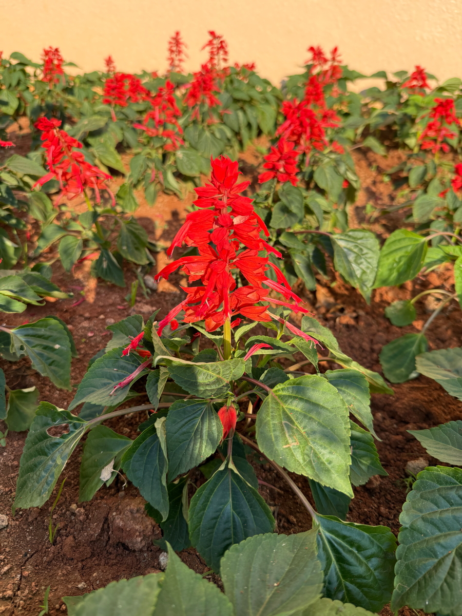 プール花壇のサルビアが綺麗に咲きそろいました