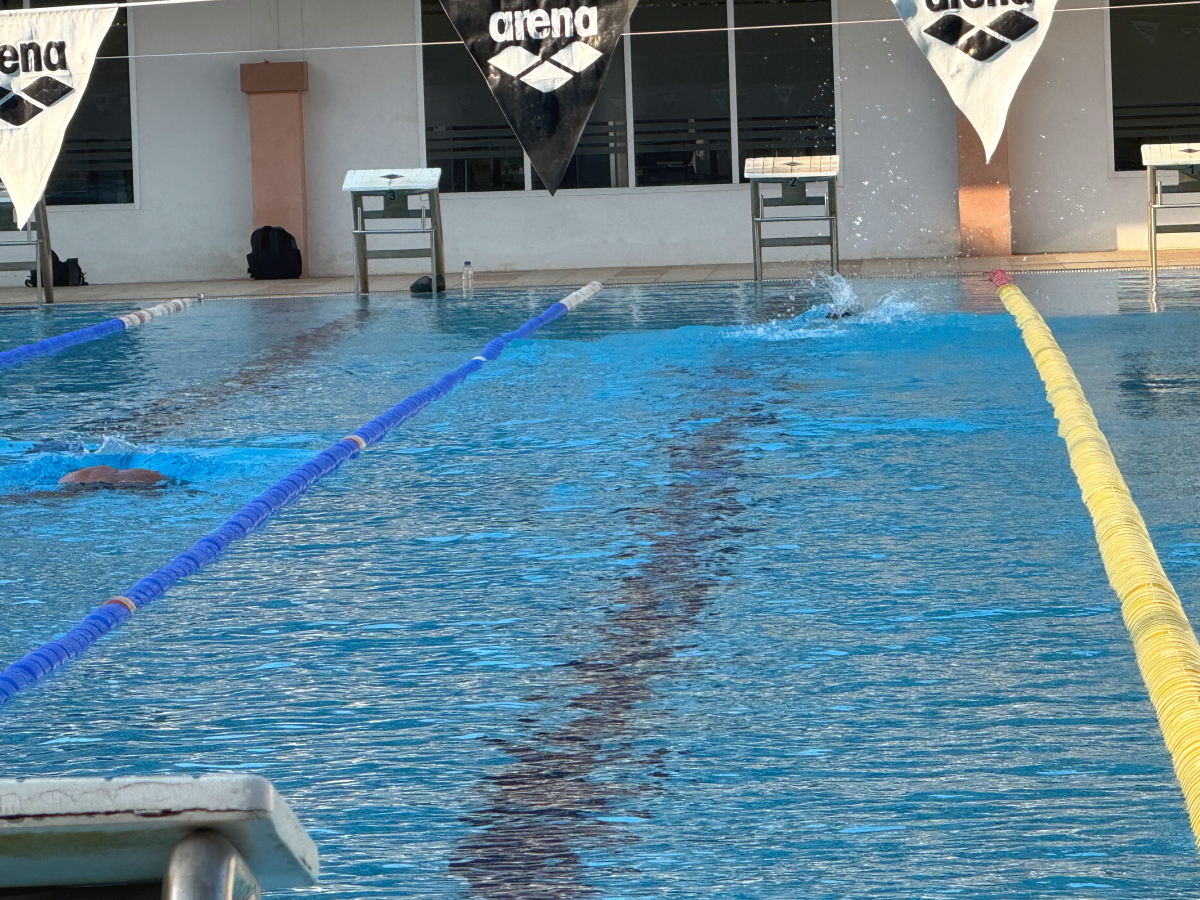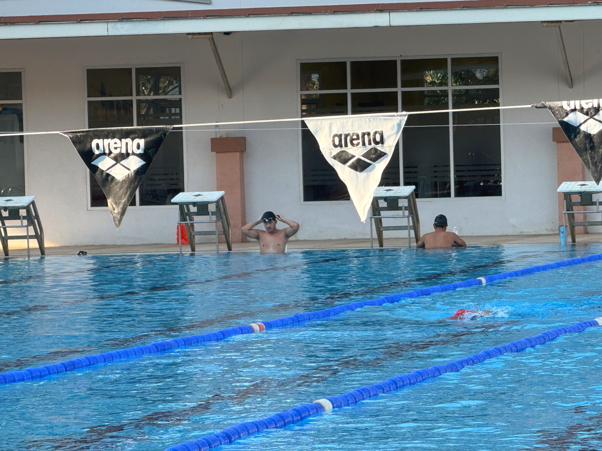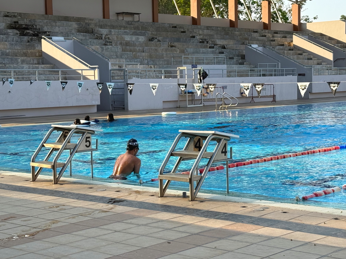 プールのお隣、トレーニングルームの前ではエアロビ教室