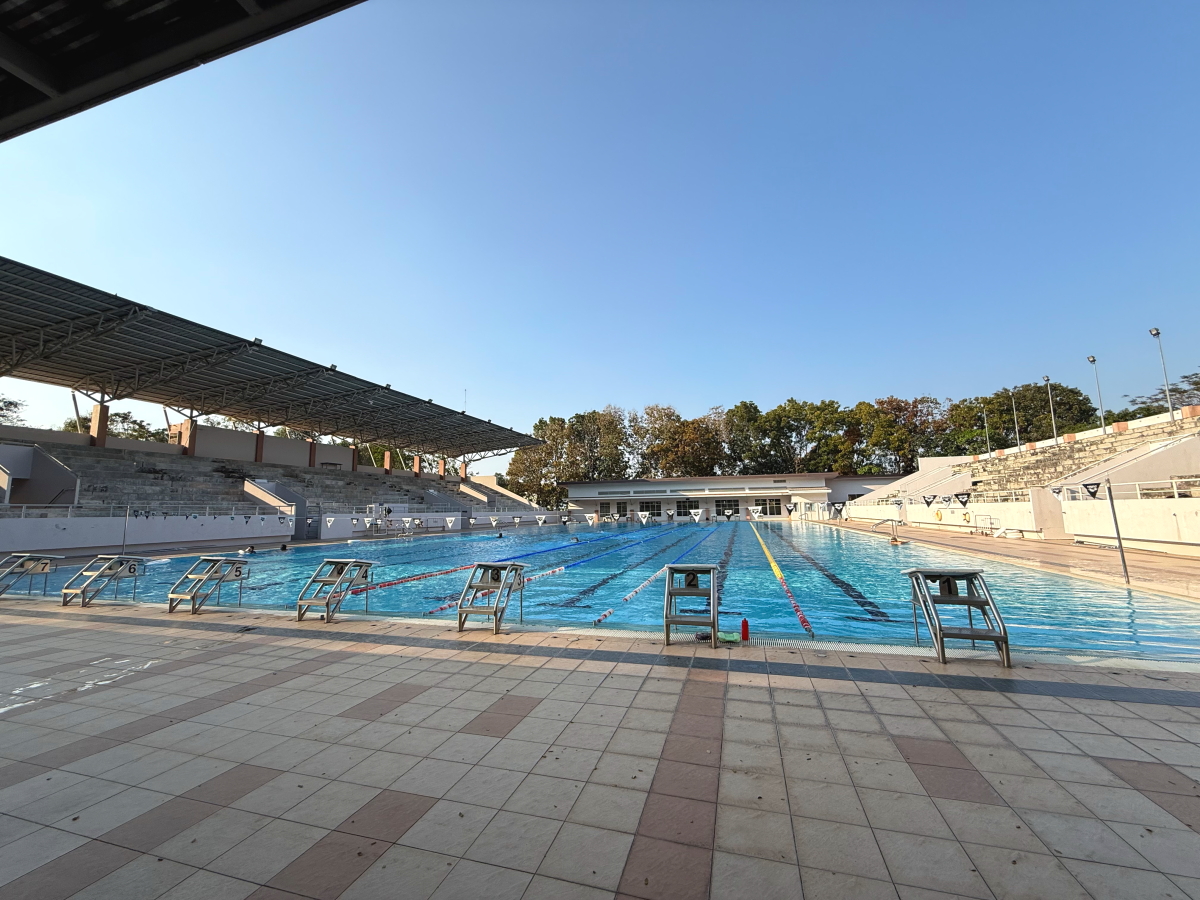 導入路の途中から守衛所を通って本校舎前を左折、プールまでの道のりの動画です
