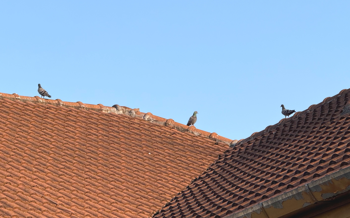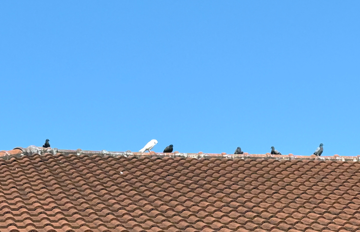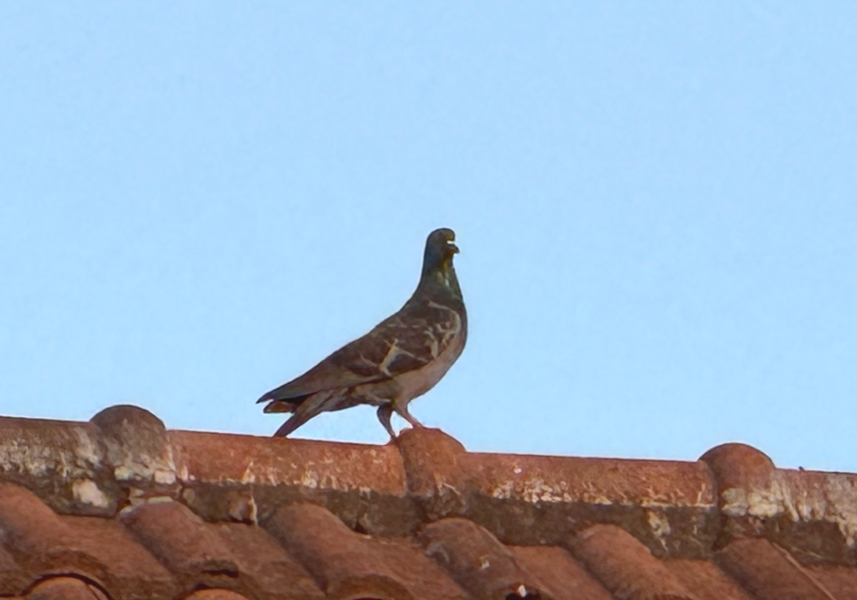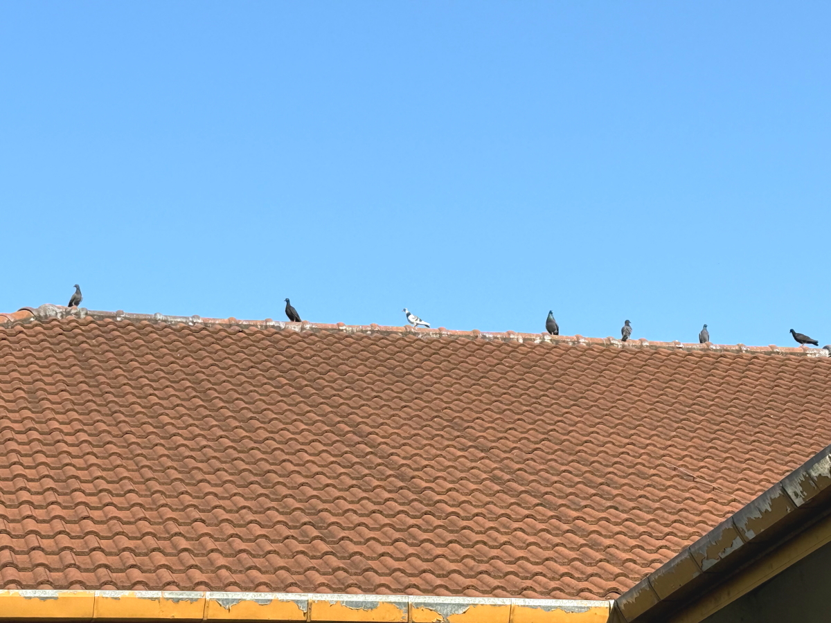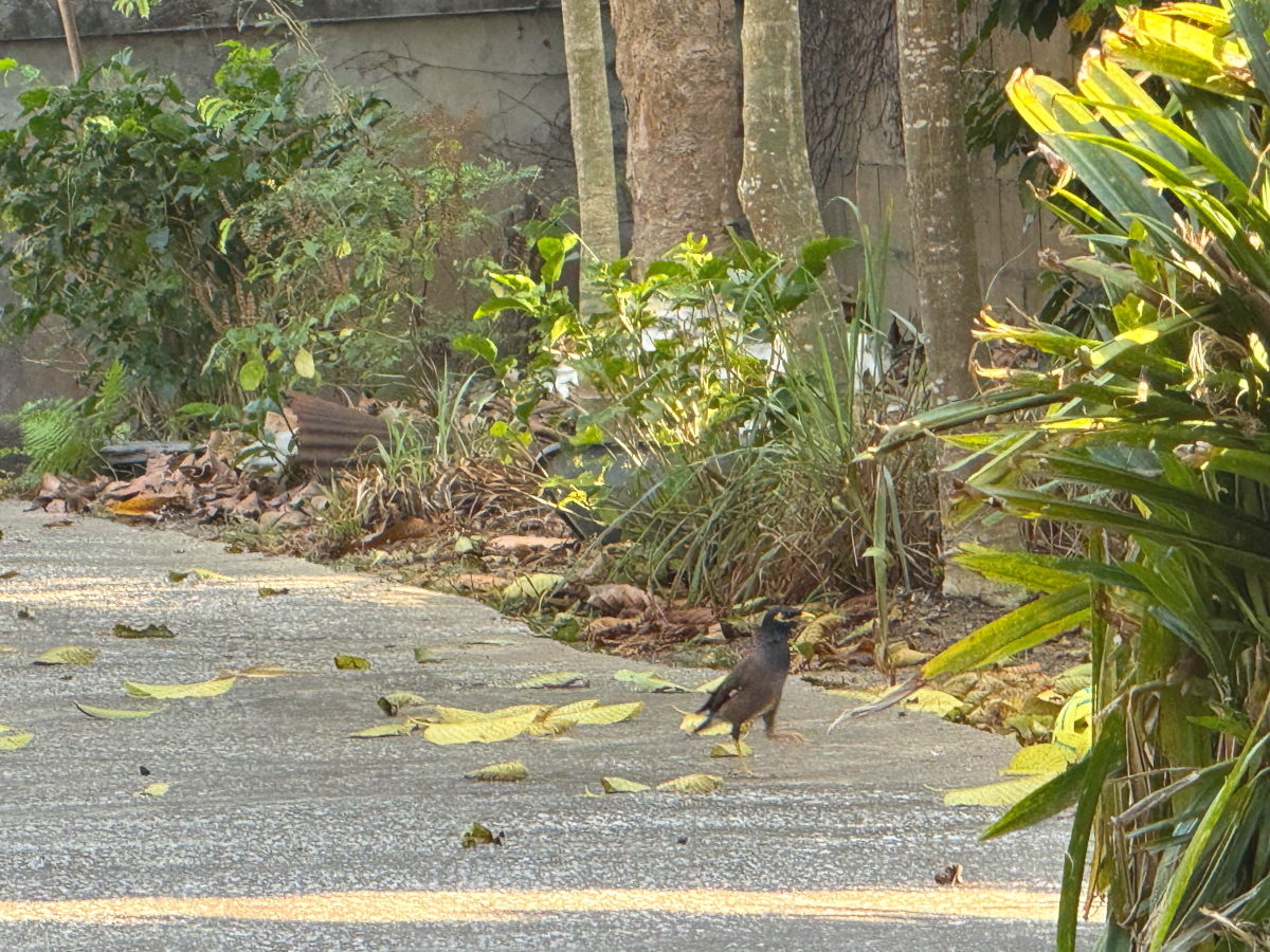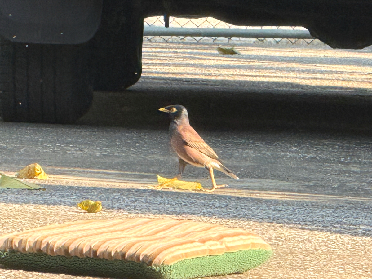 屋根上を追い出されたこちらの鳥さん、地面の上をうろうろ