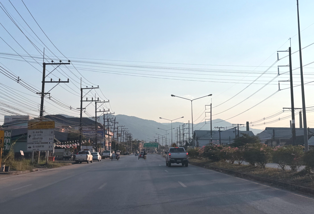 国道を南下してメーチャンの街に向かうと、山はこのところ霞の中