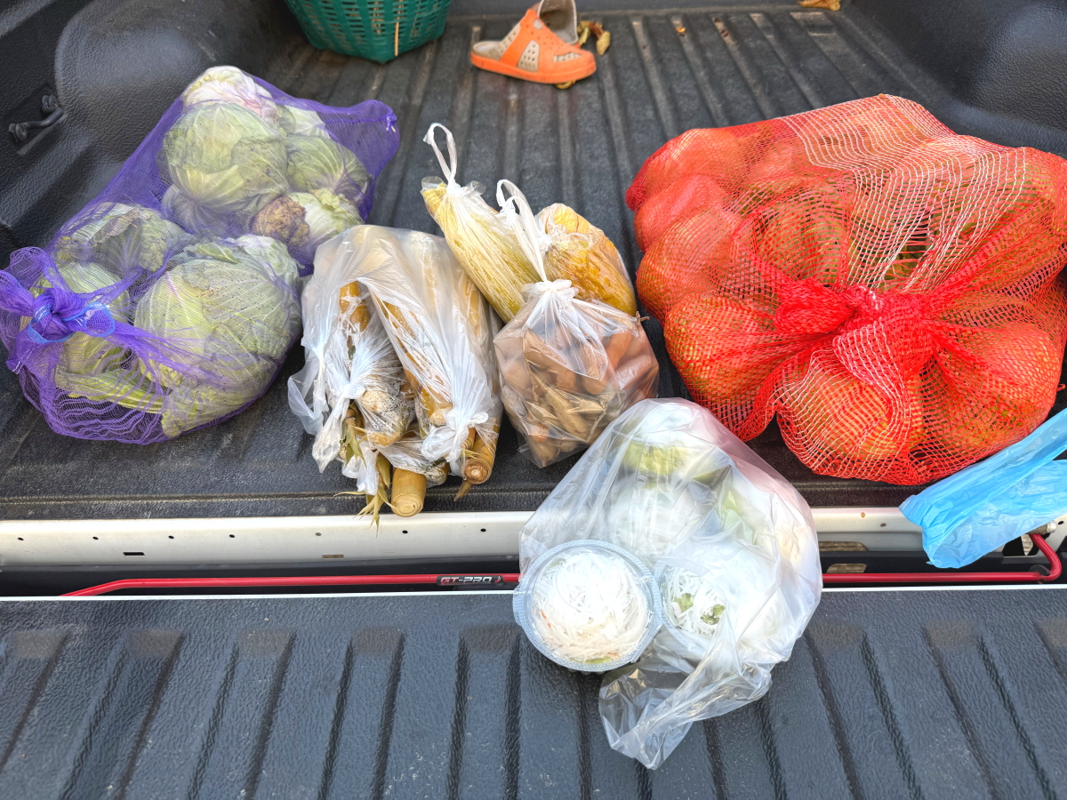 キャベツやとうもろこし買って、サービス品もいただいて200バーツ・・・約1000円