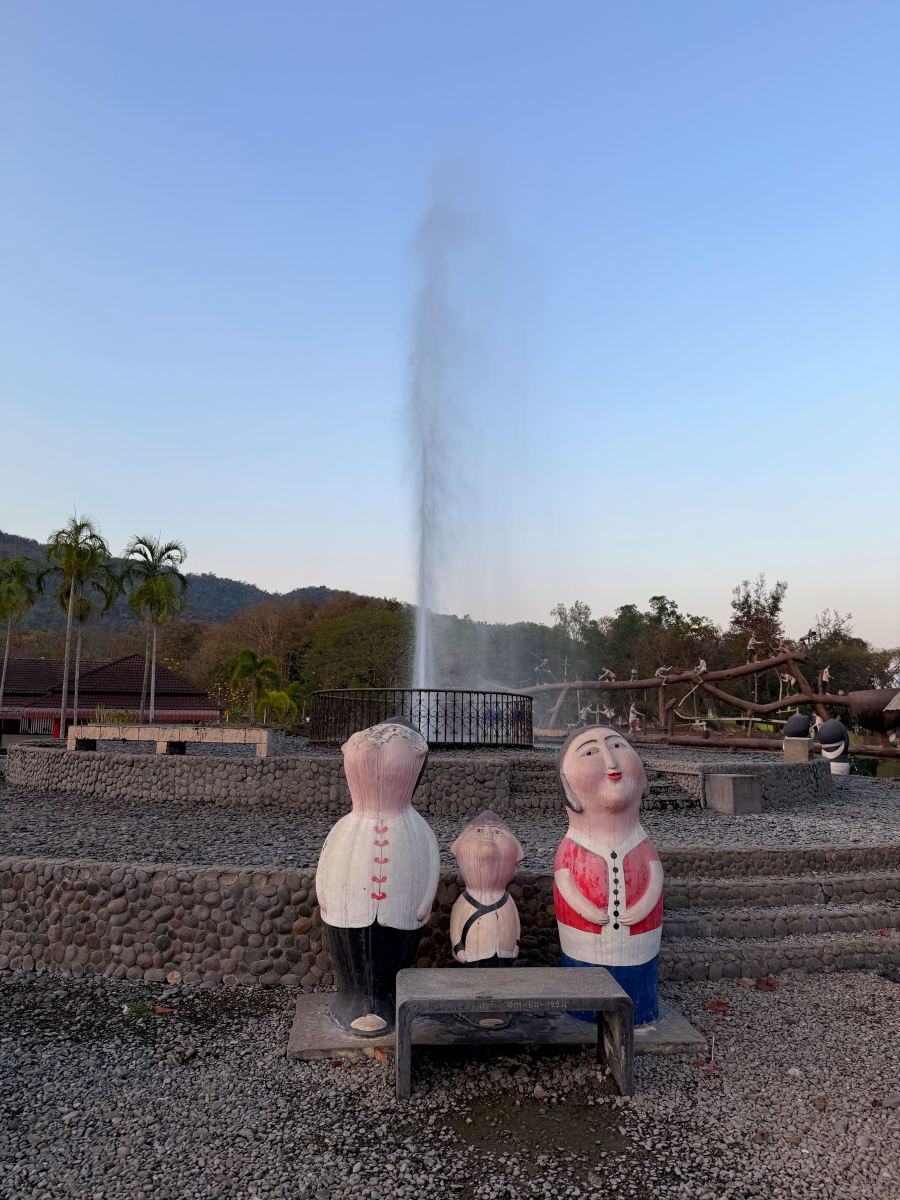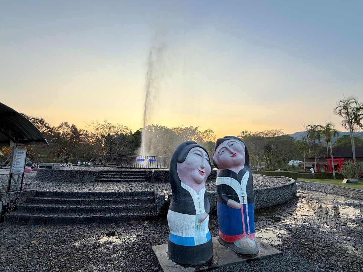 たくさん並んだ足湯の手前側は低温で、子供がはしゃいてます