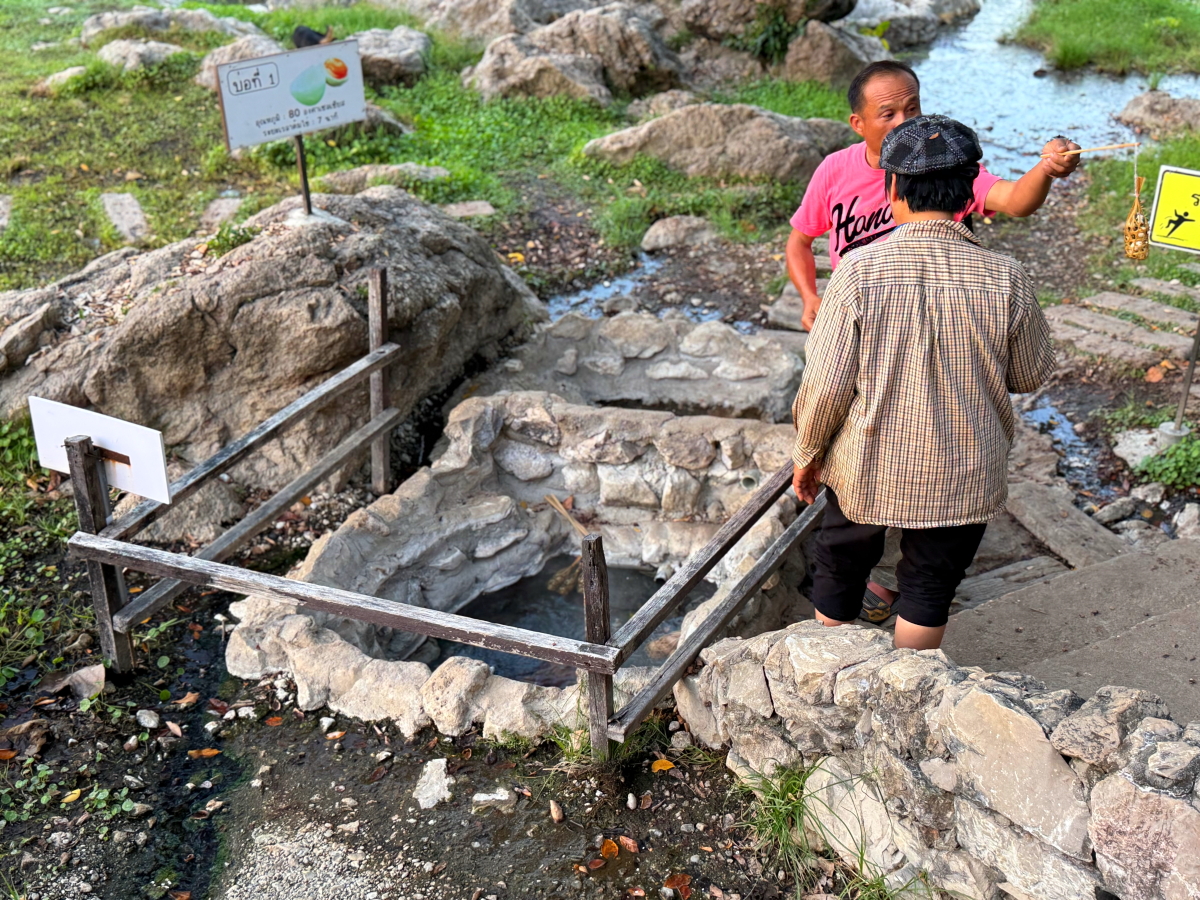 足湯横のたまご茹で用の温泉で、ゆで卵