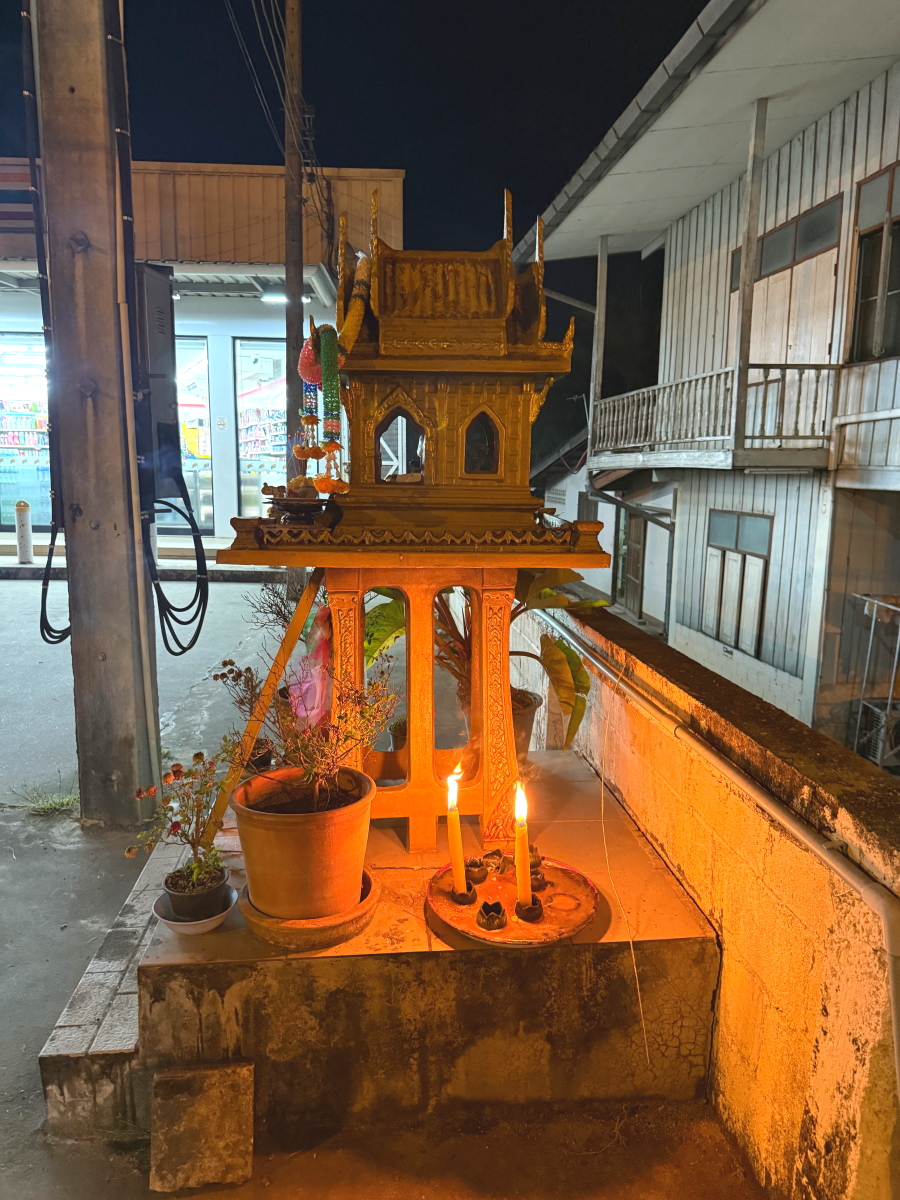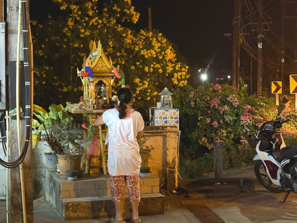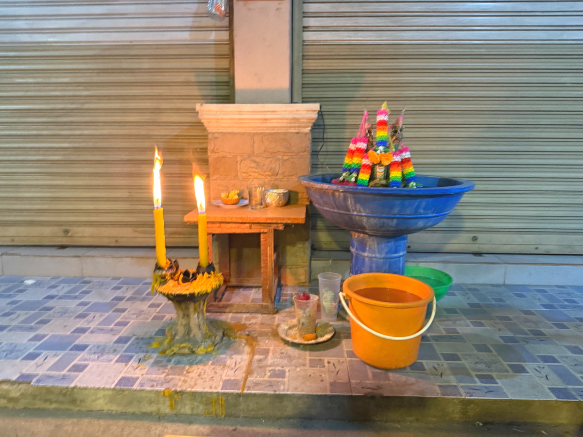 コンビニの仏壇に近所のおばさまがお線香を備えてます
