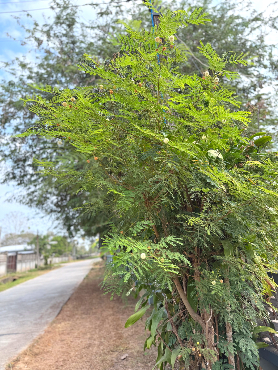 路肩の木にぽつりぽつりと咲く白いお花