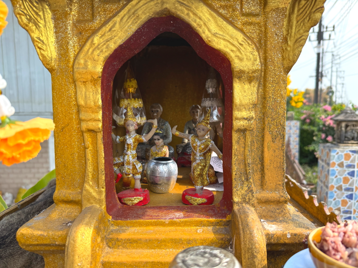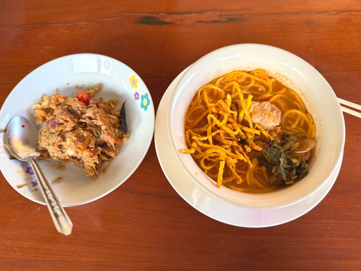 夕ご飯は先ほどの市場で買ったラーメンと辛いタイ料理