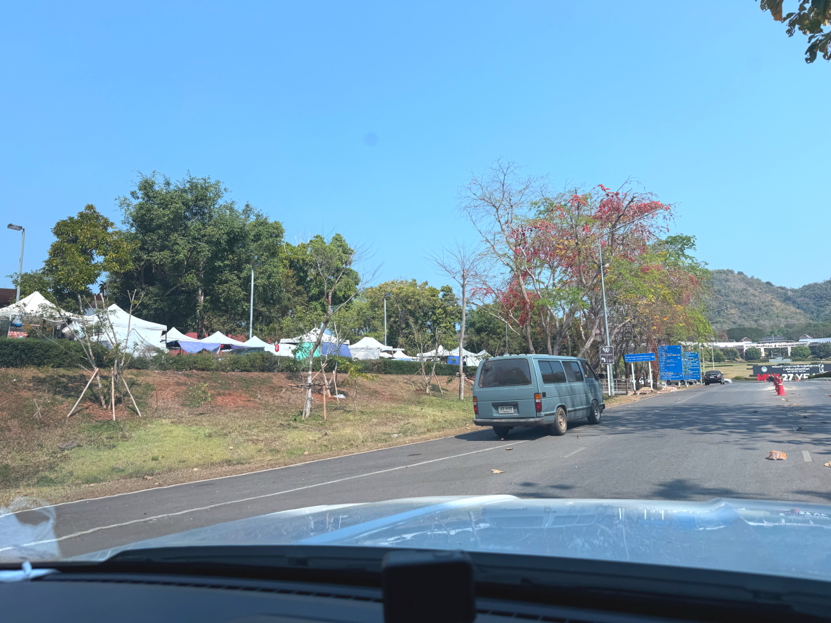 王立大学にお邪魔すると、水曜日の校内市場の日で屋台のテントが並びました