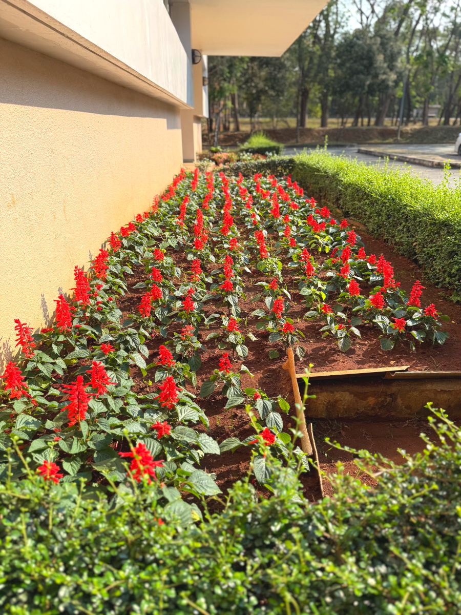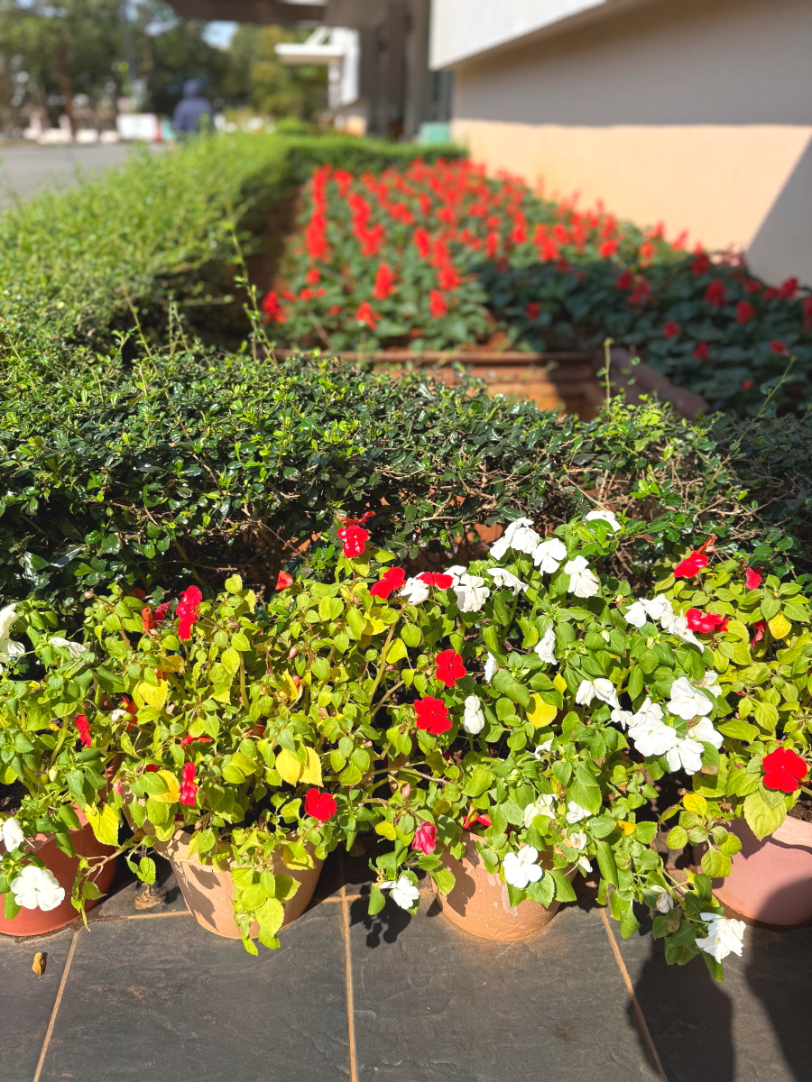 プール管理棟の花壇も華やか