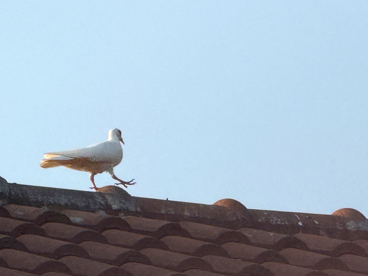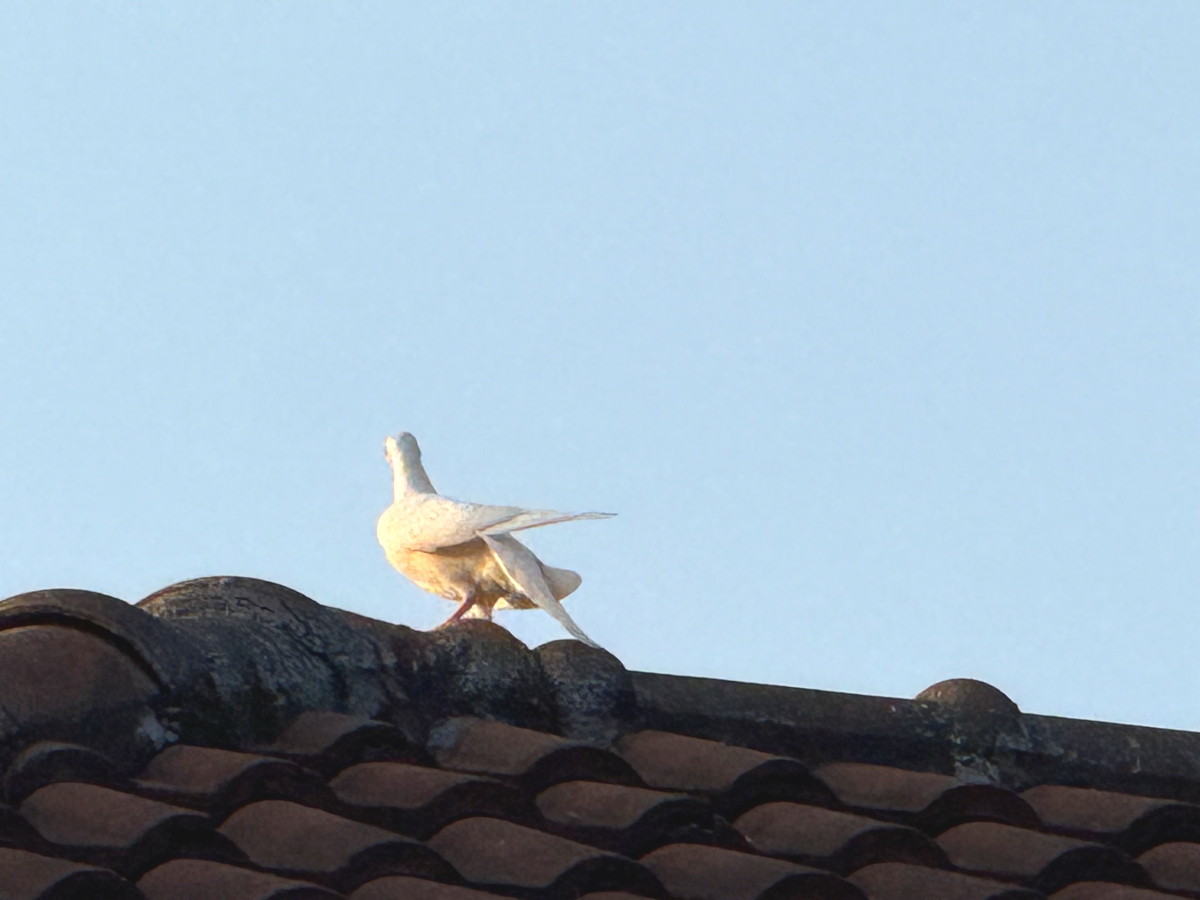 屋根上に白鳩が来てました