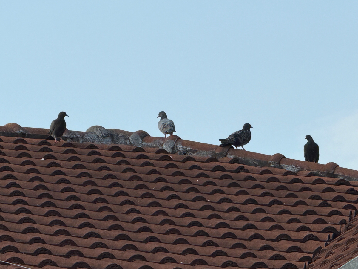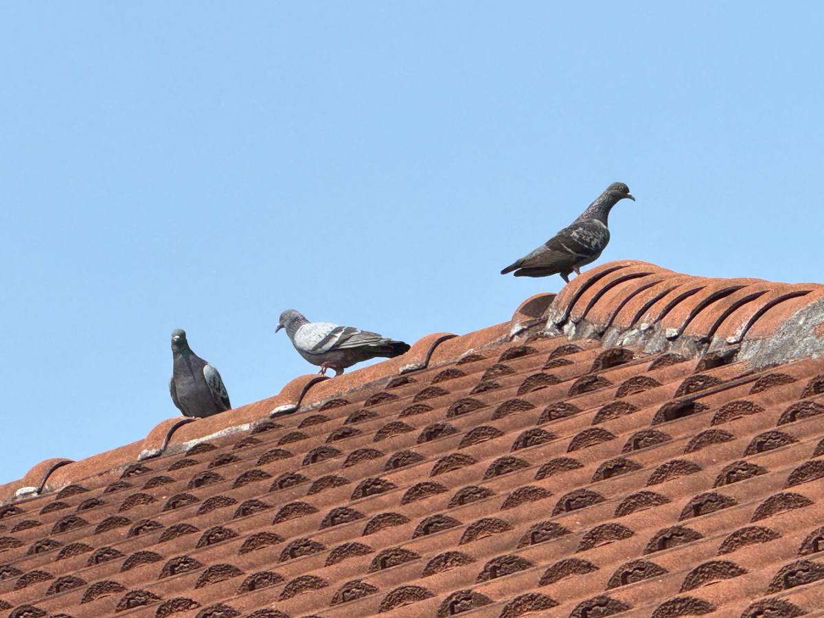屋根上は鳩さん達が占領中