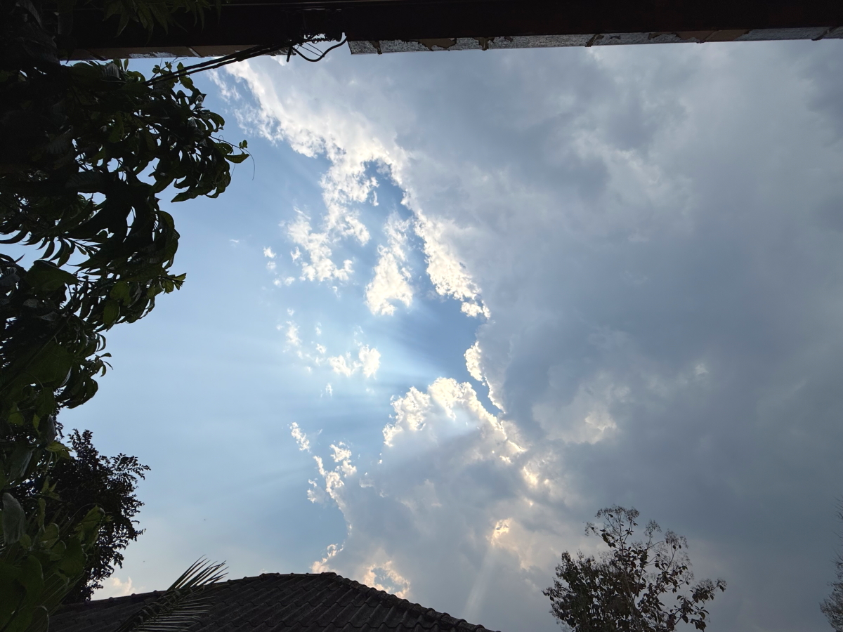 分厚い雲が湧き上がって、お日様は雲の後ろから足を伸ばしました