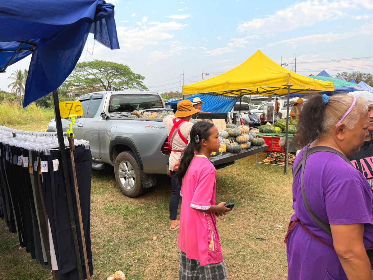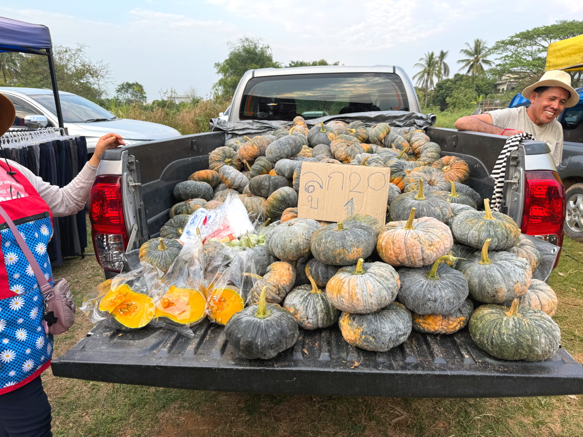屋台を省略した荷台直販のカボチャ屋さん、スマホ向けたらニッコリ笑顔