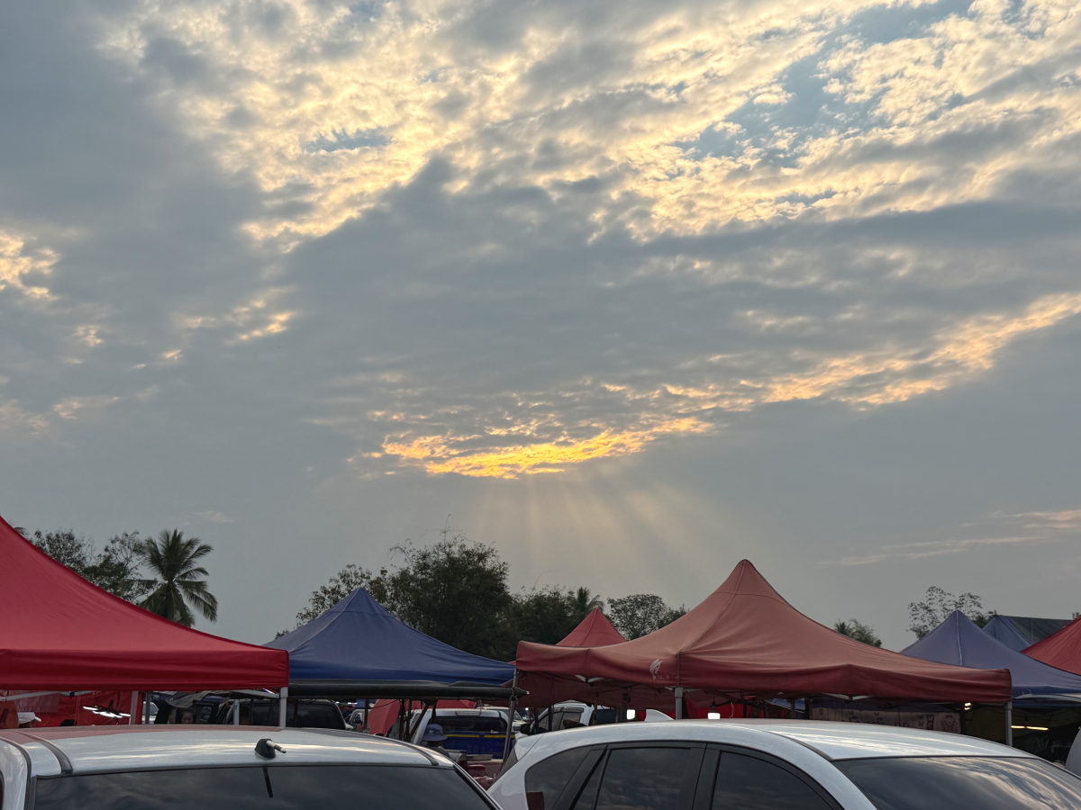 市場越しに見た西の空には天使の梯子