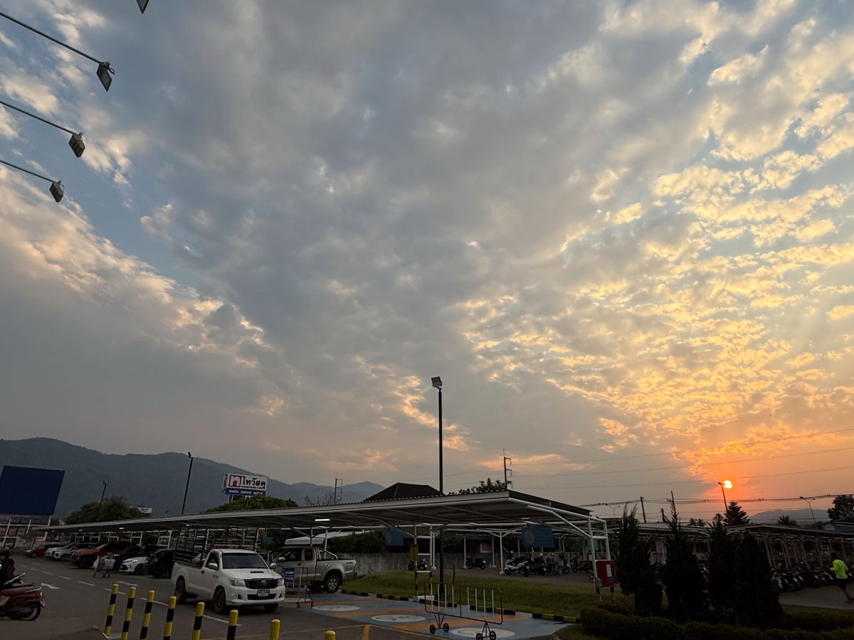 メーチャンの街まで移動していつものスーパーで夕暮れを撮影