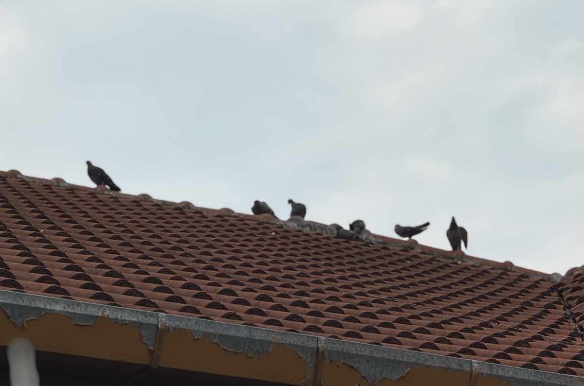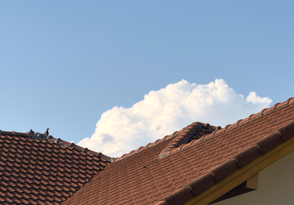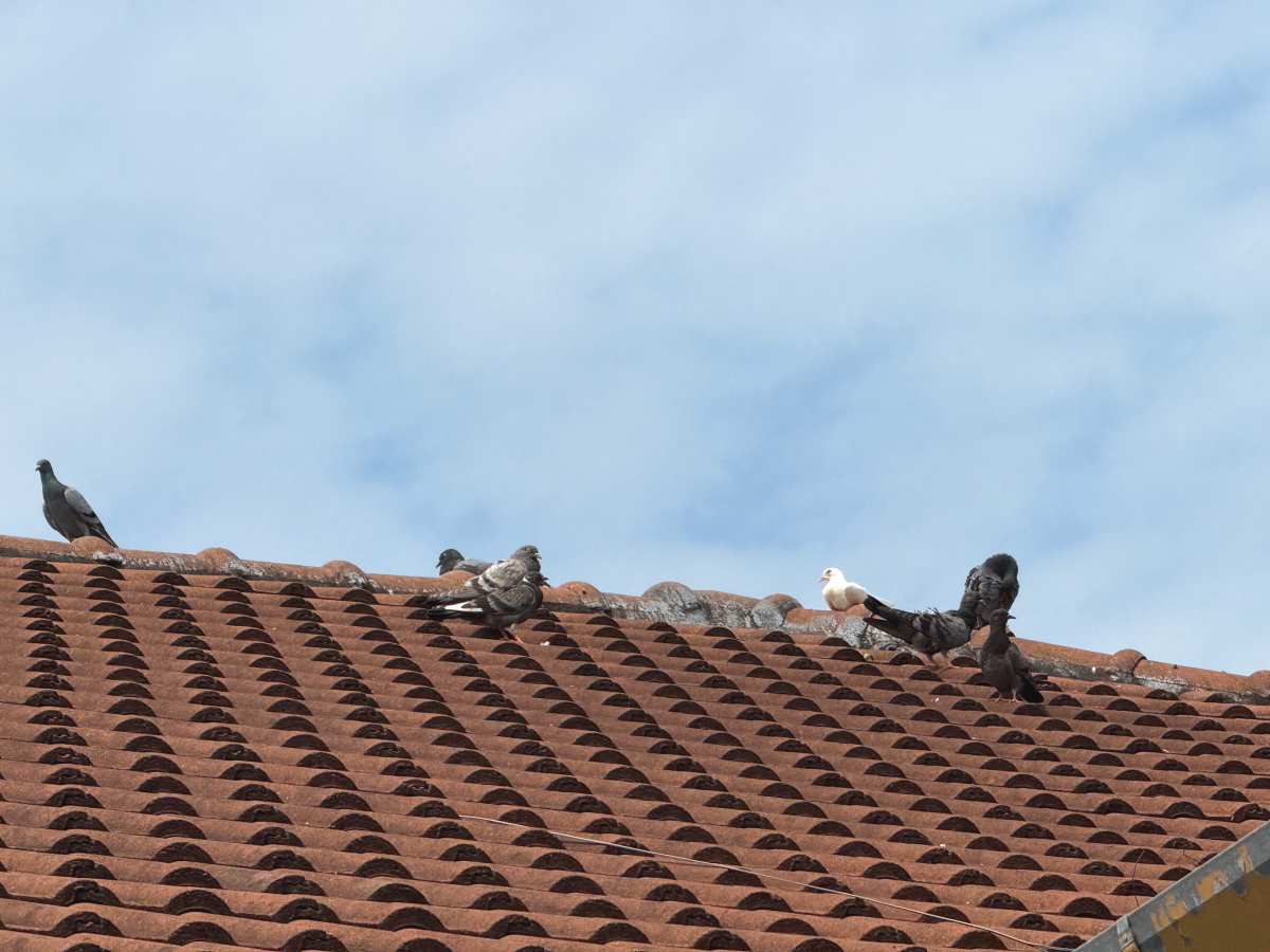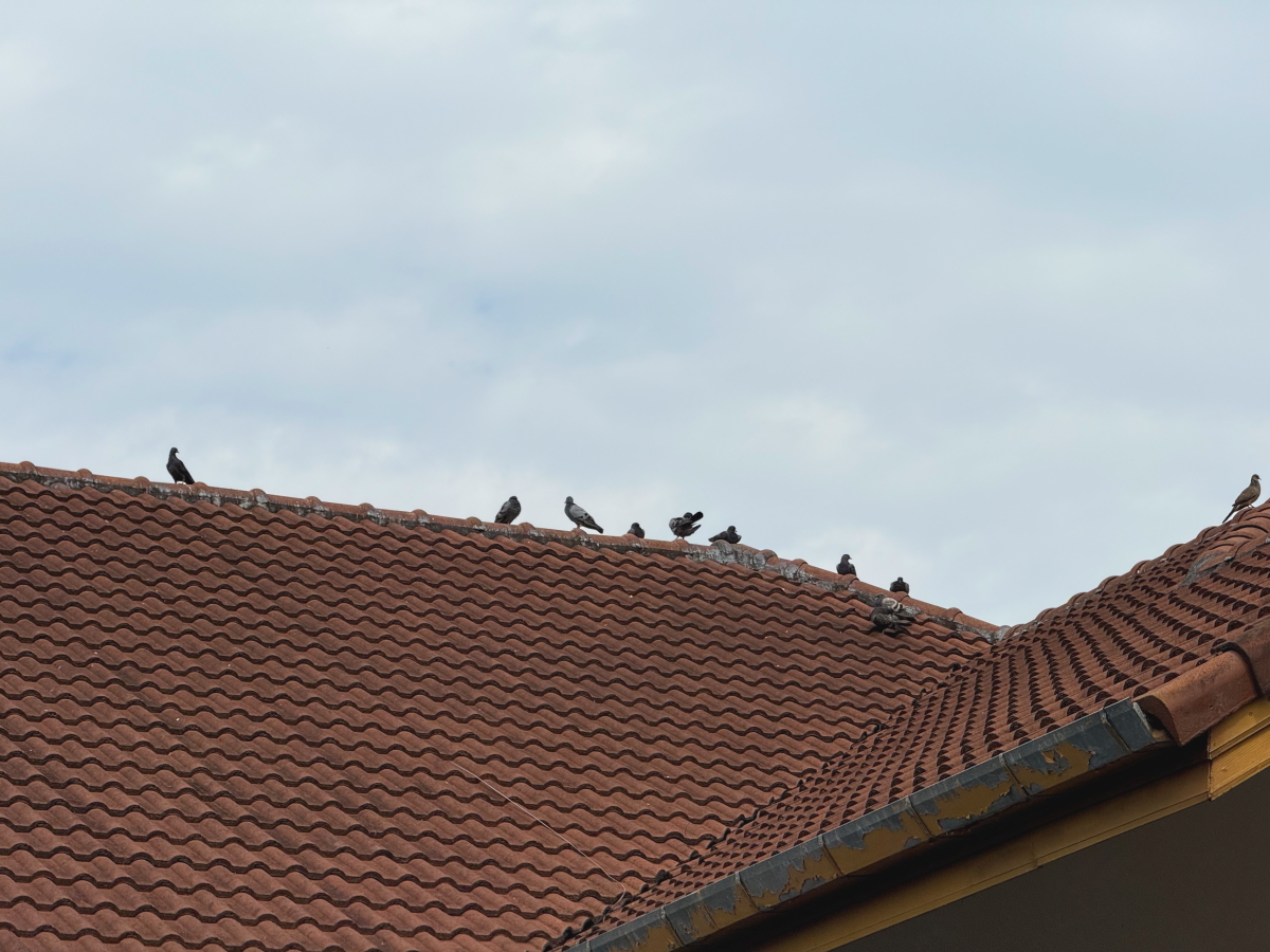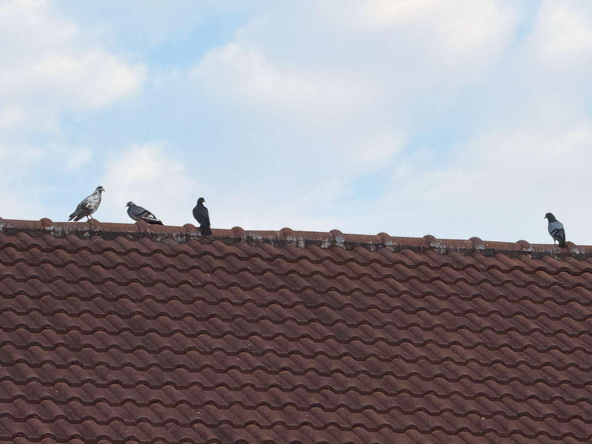 屋根上の鳩さん達のバックに、入道雲が湧き上がりました