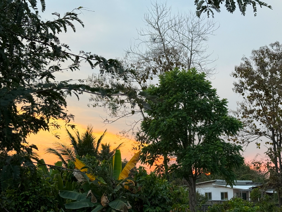 朝焼けの空から鳥とお花、庭でくつろぐ猫達と夕暮れ定点観測まででした