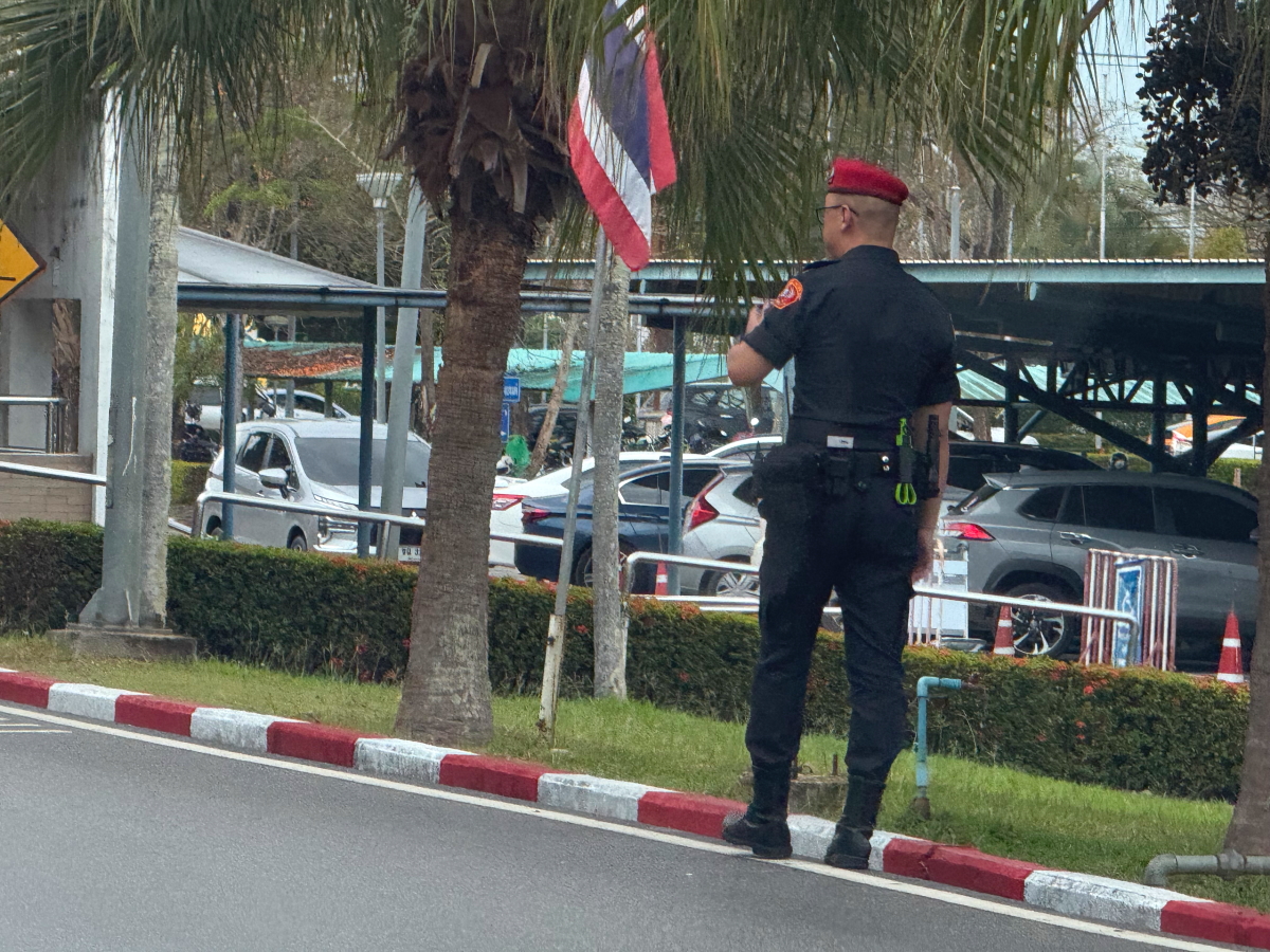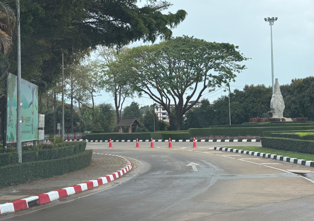 バイパスを北上、国道合流地点の右側の建物は王立大学の大学病院