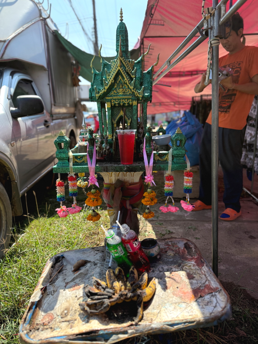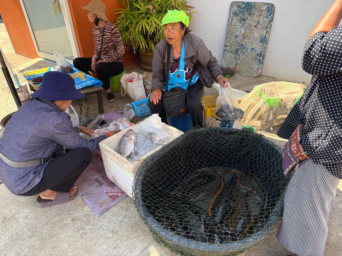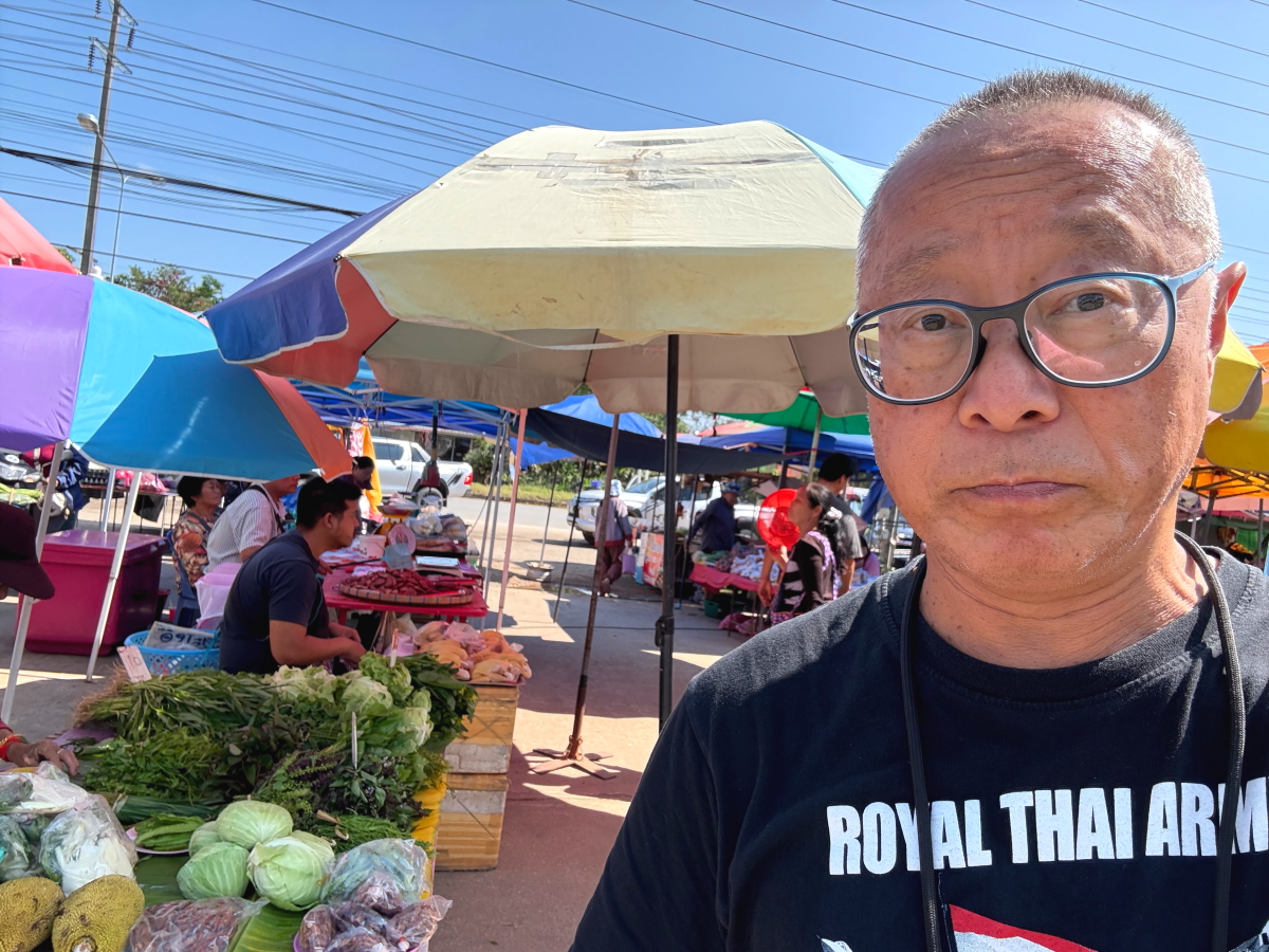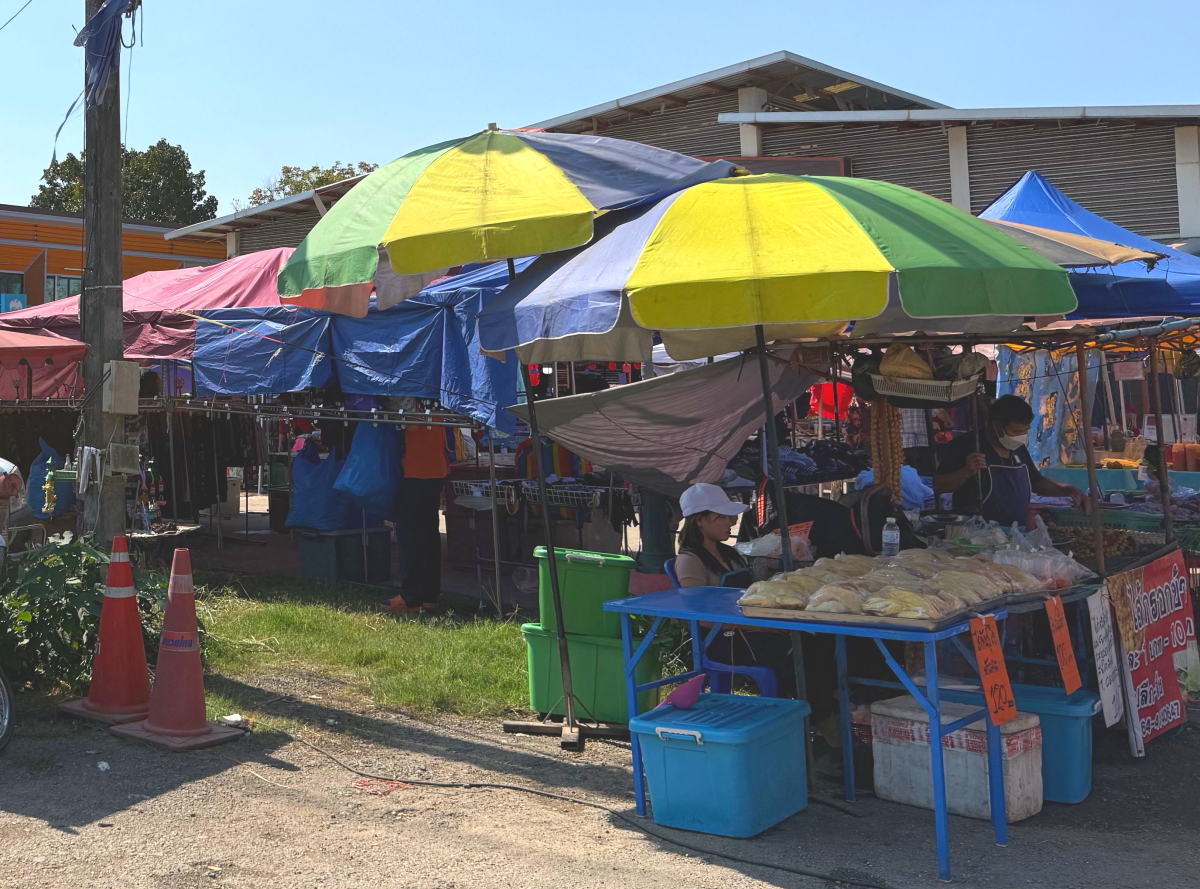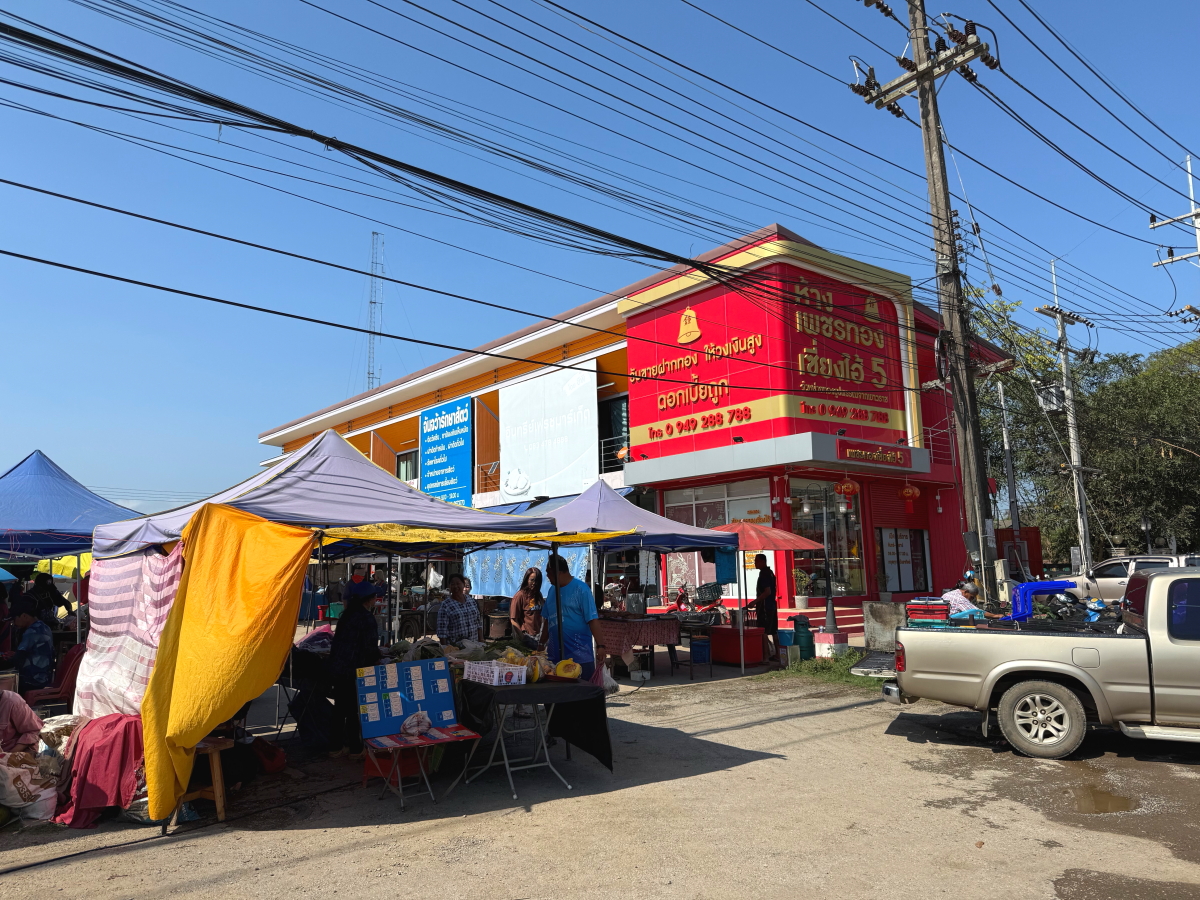 帰り道、先の信号でUターンして、対向車線から市場を撮影